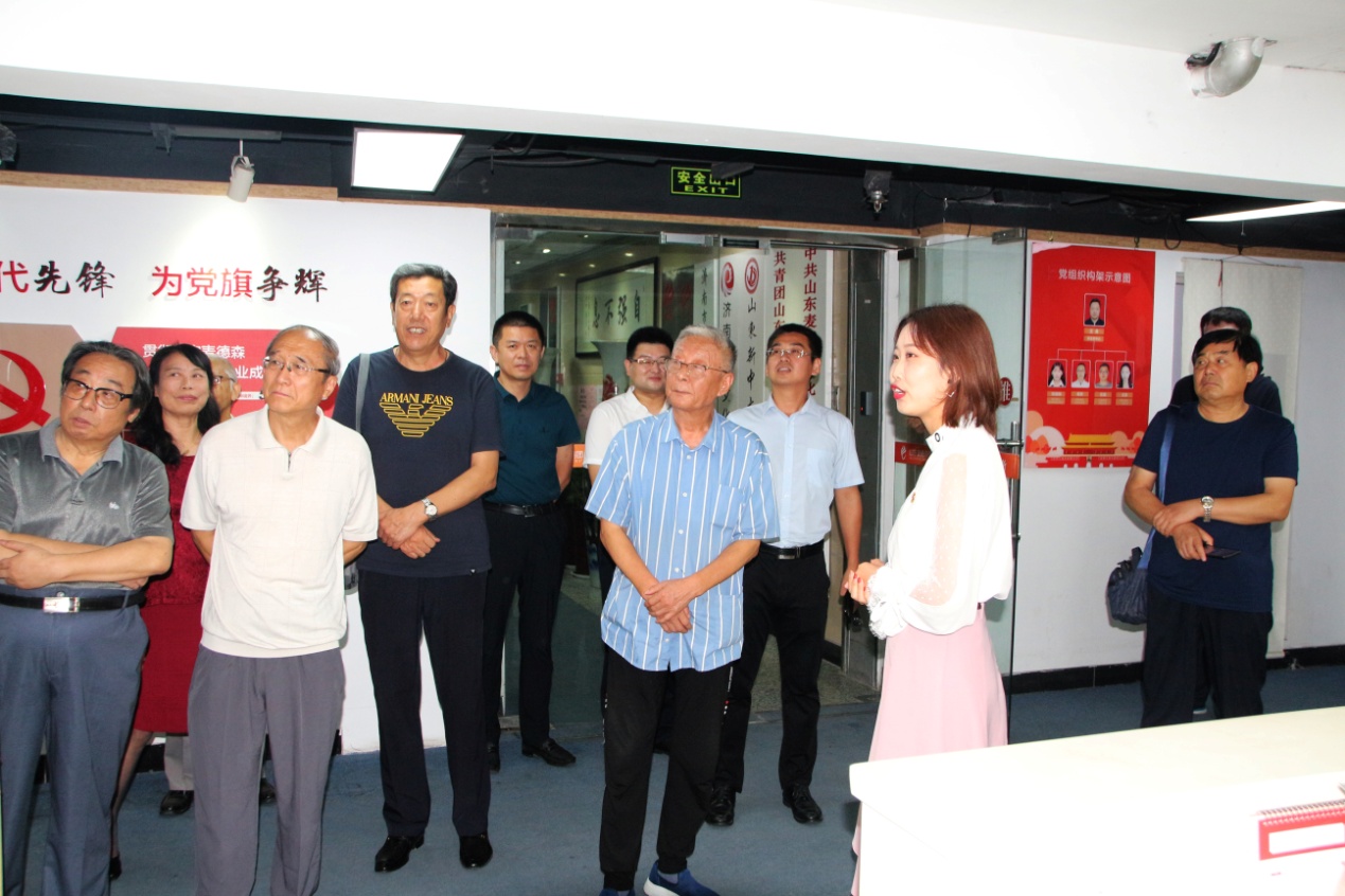 在党支部组织委员张园园的解说和引导下,山东诗词学会各位领导对集团企业文化墙、党建宣传墙、企业荣誉展架以及各业务职能部门办公区域进行了参观。参观过程中,领导们翻阅查看了集团党支部“三会一课”会议记录、党员手抄党章、《“不忘初心、牢记使命”初心组诗词》等党建材料和《济南府志》、《莱州年鉴》等公司出版印刷的各类书籍,对我集团的党务工作和业务工作给予充分肯定。