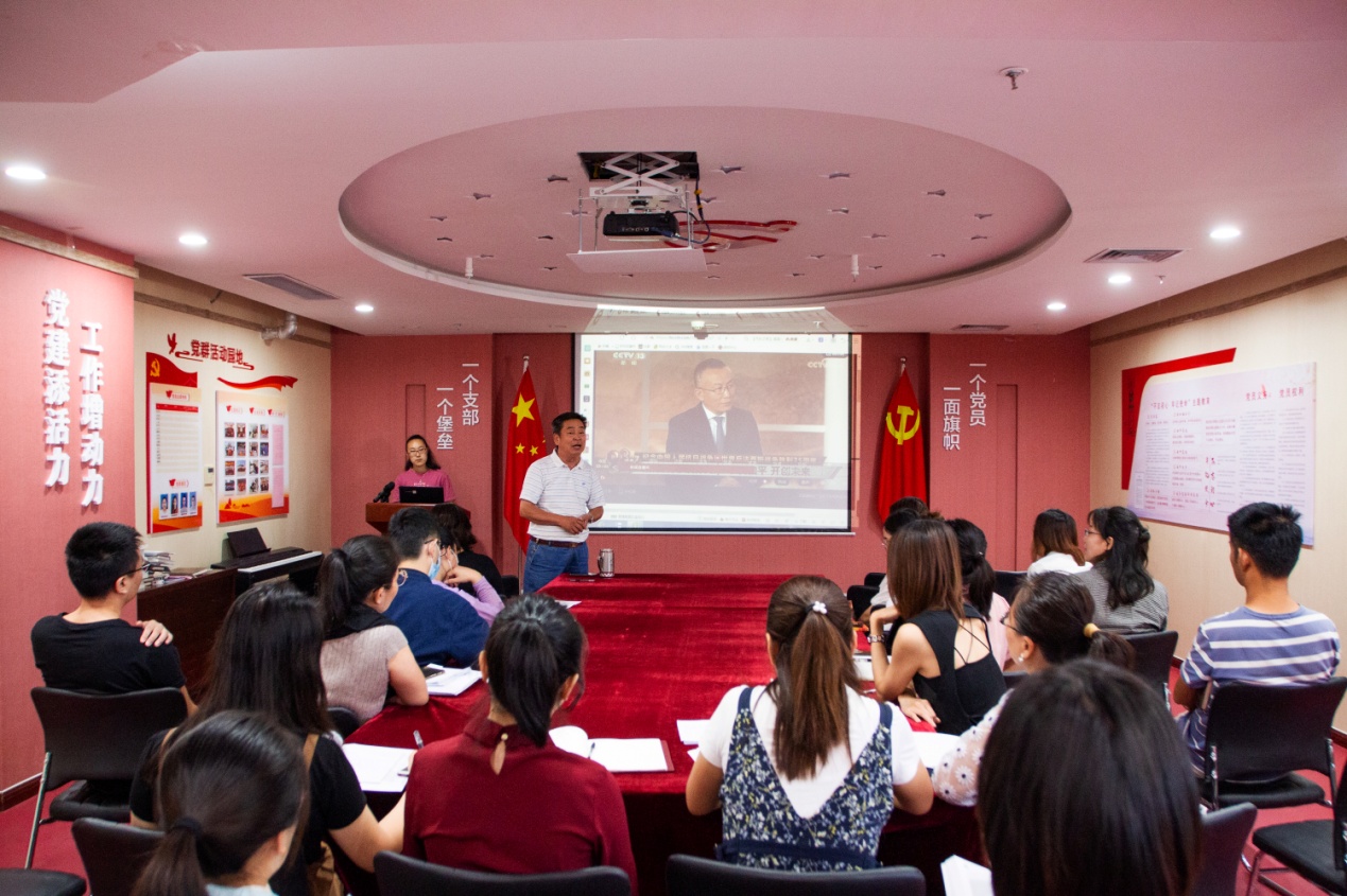 在集团党支部书记王勇博士的倡导下,党支部副书记桑守正带领党员突击队队员代表在党群活动室观看了“向抗战烈士敬献花篮仪式”视频直播。