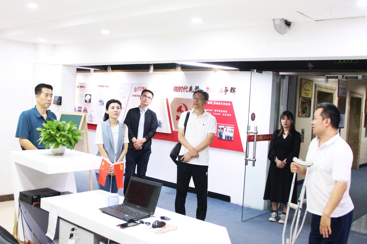 王勇博士引导各位领导先后参观了集团党建活动室、企业荣誉展架以及公司各业务职能部门办公区域,着重介绍了麦德森商学院、“长鼓型”党建工作法,并将企业内刊《麦德森人》赠送给姜波书记。