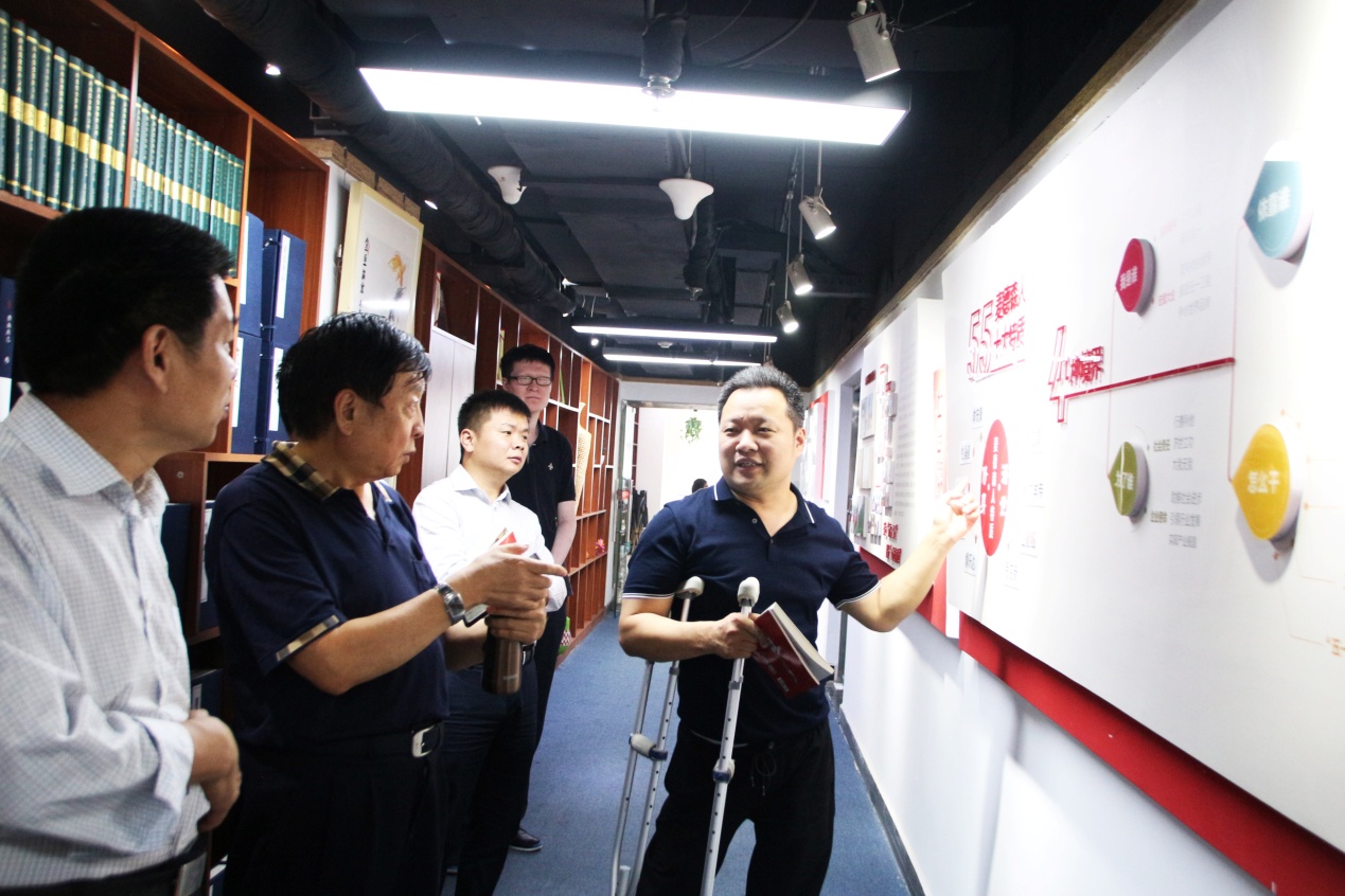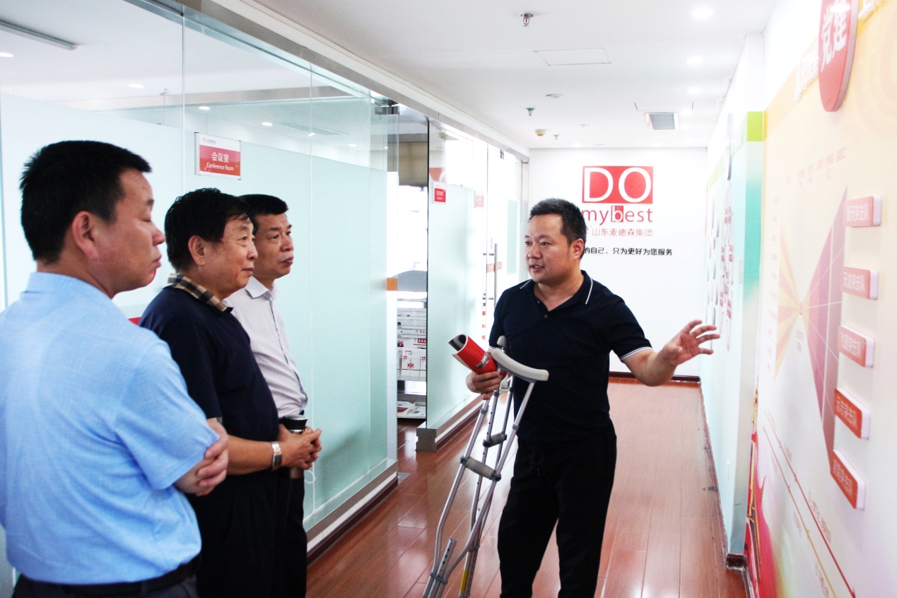 在王勇博士的引导和讲解下,郭簃秘书长、张振江部长等领导对集团总部进行了参观。参观过程中,王勇博士向各位领导详细介绍了麦德森企业文化、“长鼓型”党建工作法以及各事业部发展建设情况。