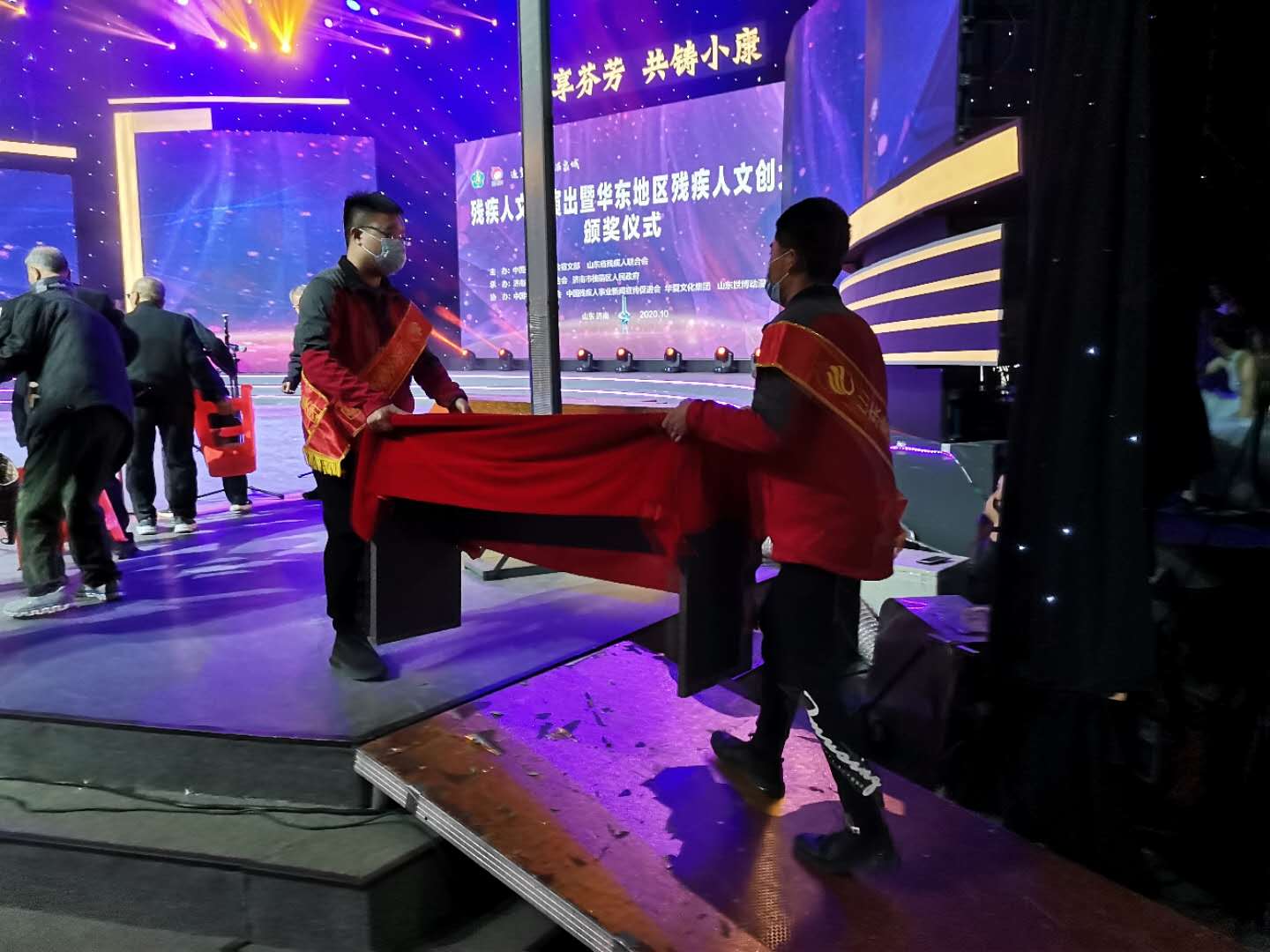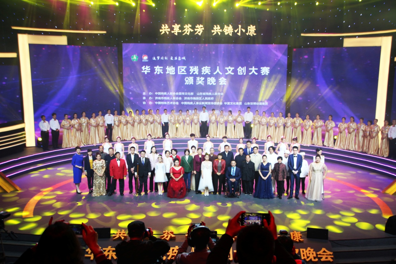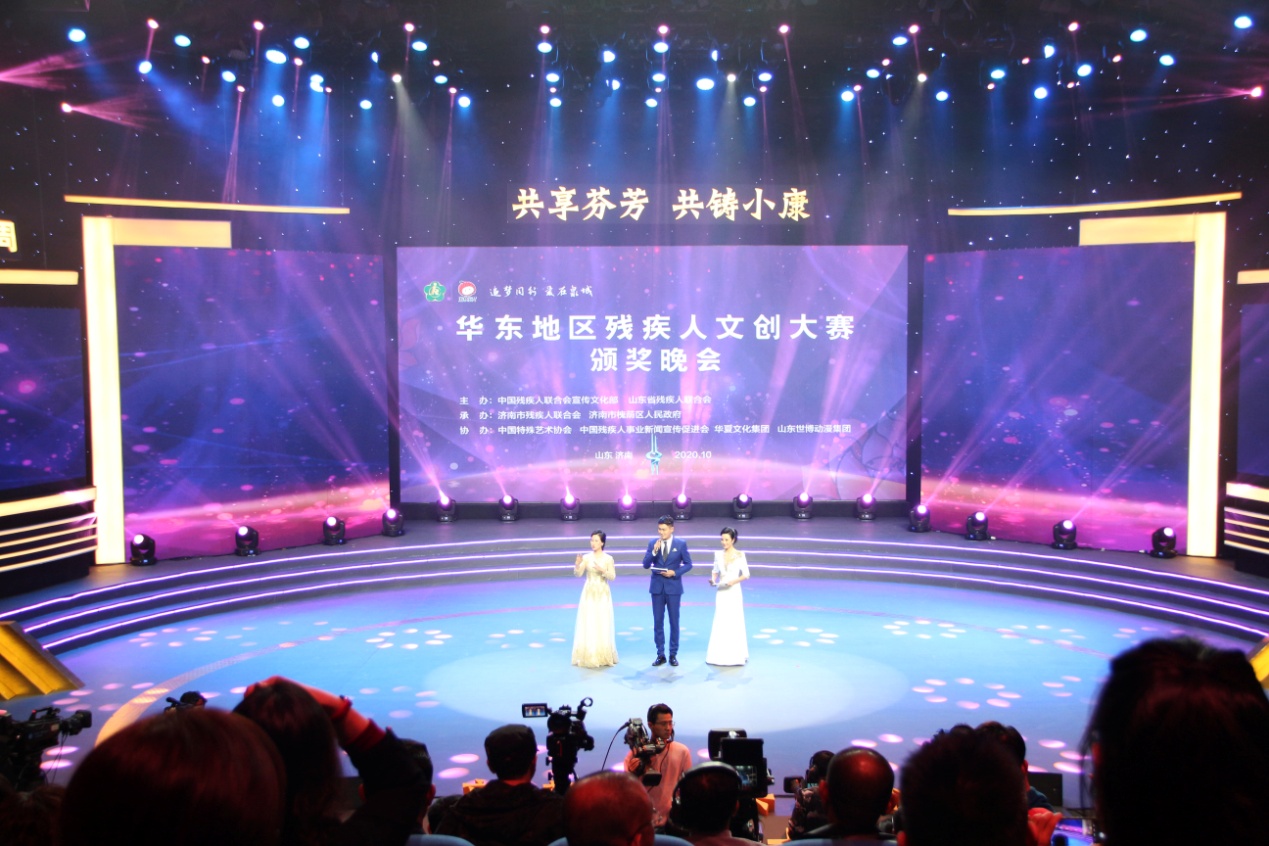 10月28日,由中国残疾人联合会宣文部、山东省残疾人联合会共同主办的“共享芬芳、共铸小康——华东地区残疾人文创大赛颁奖晚会”在济南电视台1000平米演播厅举行。