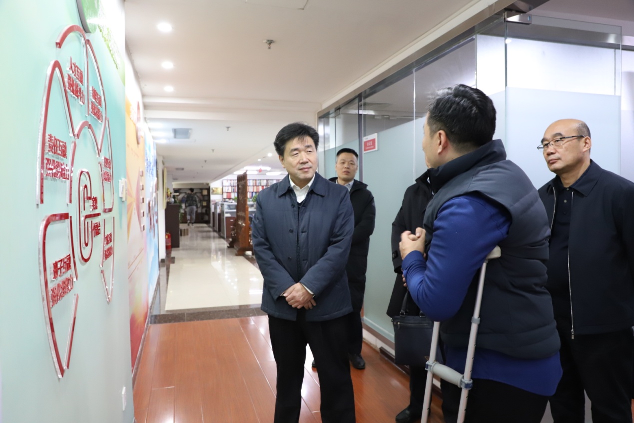 在王勇博士的解说和引导下,郭之祥一行实地考察了集团总部各职能部门办公区域,详细询问了解了集团“博览医书”、图书出版等方面工作内容。在调研“博览医书”项目时,郭之祥指出,中医古籍的汇编,需要耗费特别大的精力和毅力,中医药文化的传承非常需要这样的力量。王勇博士表示:“我们做一点点,就推动了一点点,‘博览医书’还可以做的更多,做得更加细致、更加完善。”