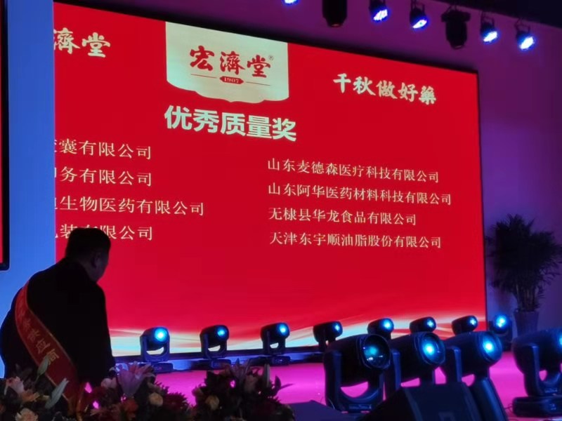 12月21日,由济南市卫健委、济南市中医药局、济南市文化和旅游局联合主办的济南市第七届膏方节暨第五届宏济堂制药阿胶节在济南举行。宏济堂优秀供应商、必威平台旗下山东麦德森医疗科技有限公司荣获本次活动“优秀质量奖”,医疗科技有限公司总经理王昌旺现场领取荣誉奖牌。