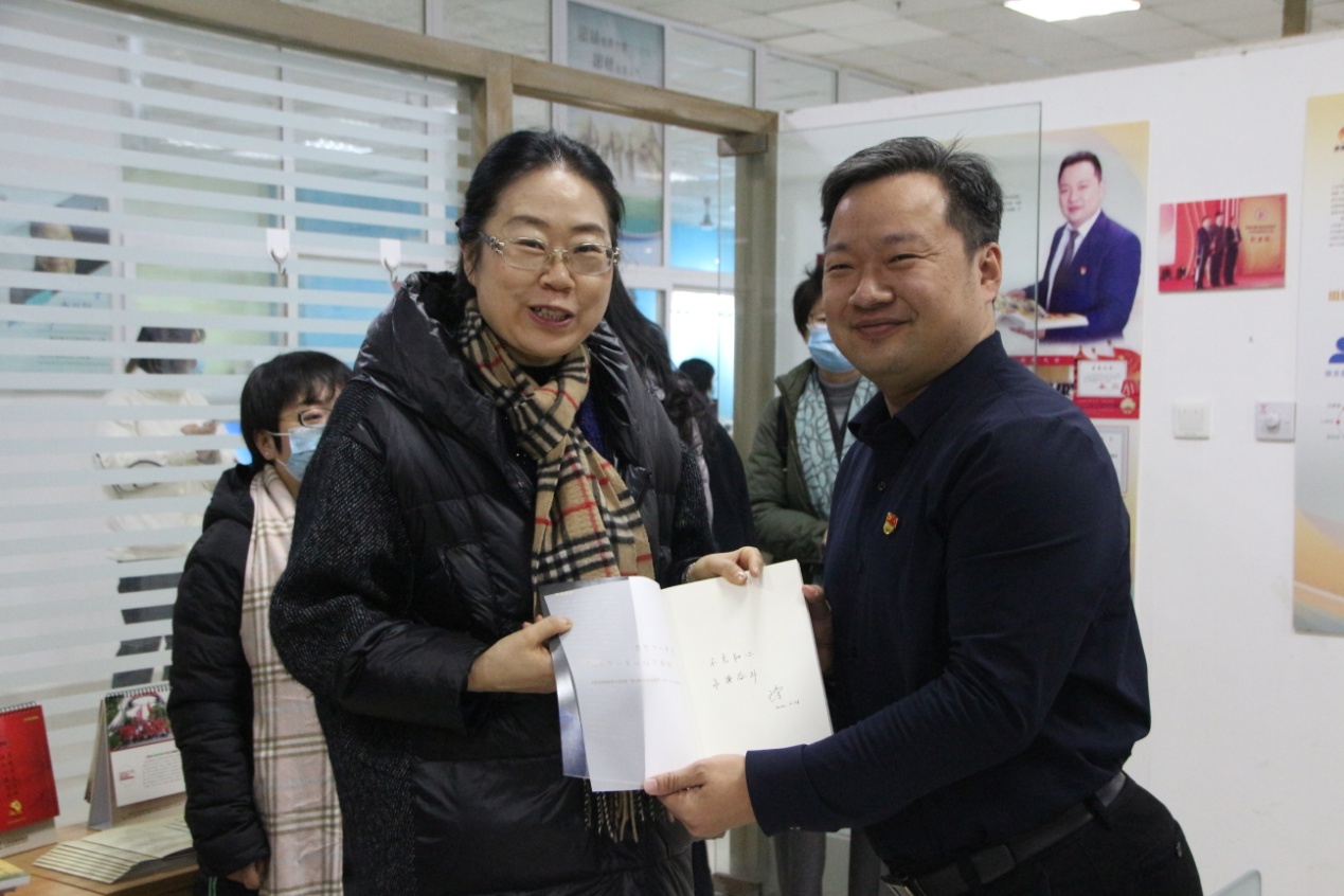 调研过程中,王勇博士将自己的传记《太阳从不亏欠任何人》赠送给谷晓红书记,并在扉页写下“不忘初心、永续奋斗”。