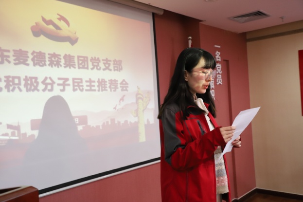 庆祝建党百年、传承红色基因。入党积极分子民主推荐会不仅为麦德森集团党支部输送了新鲜血液,而且为支部的发展注入了新的活力。未来,集团党支部将不断强化自身建设,增强党组织的凝聚力、战斗力和向心力,坚持和加强党建对于企业发展的全面领导,筑牢麦德森“十四五”发展基础,推动企业高质量发展。