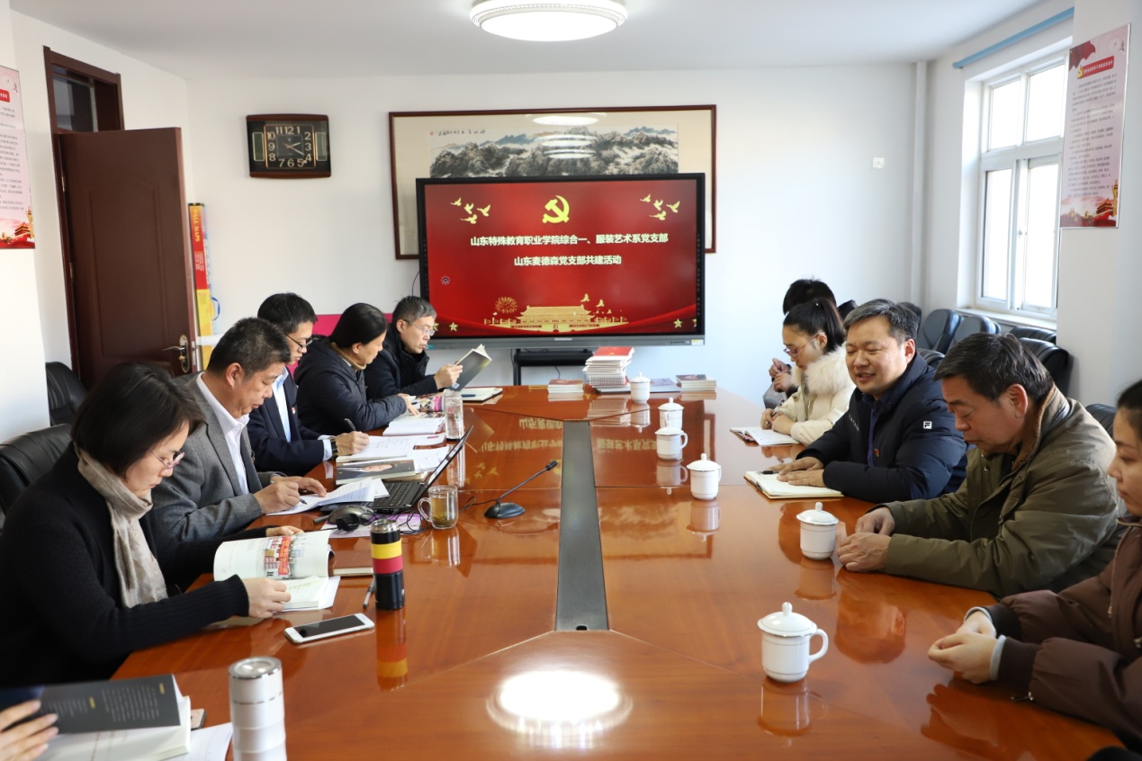 12月31日,必威平台党支部与山东特殊教育职业学院综合一、服装艺术系党支部共建活动在山东特殊教育职业学院举行。山东特殊教育职业学院党委书记管洪锋,党委副书记、院长李心沁等领导,必威平台党支部书记王勇博士,副书记桑守正等出席活动。