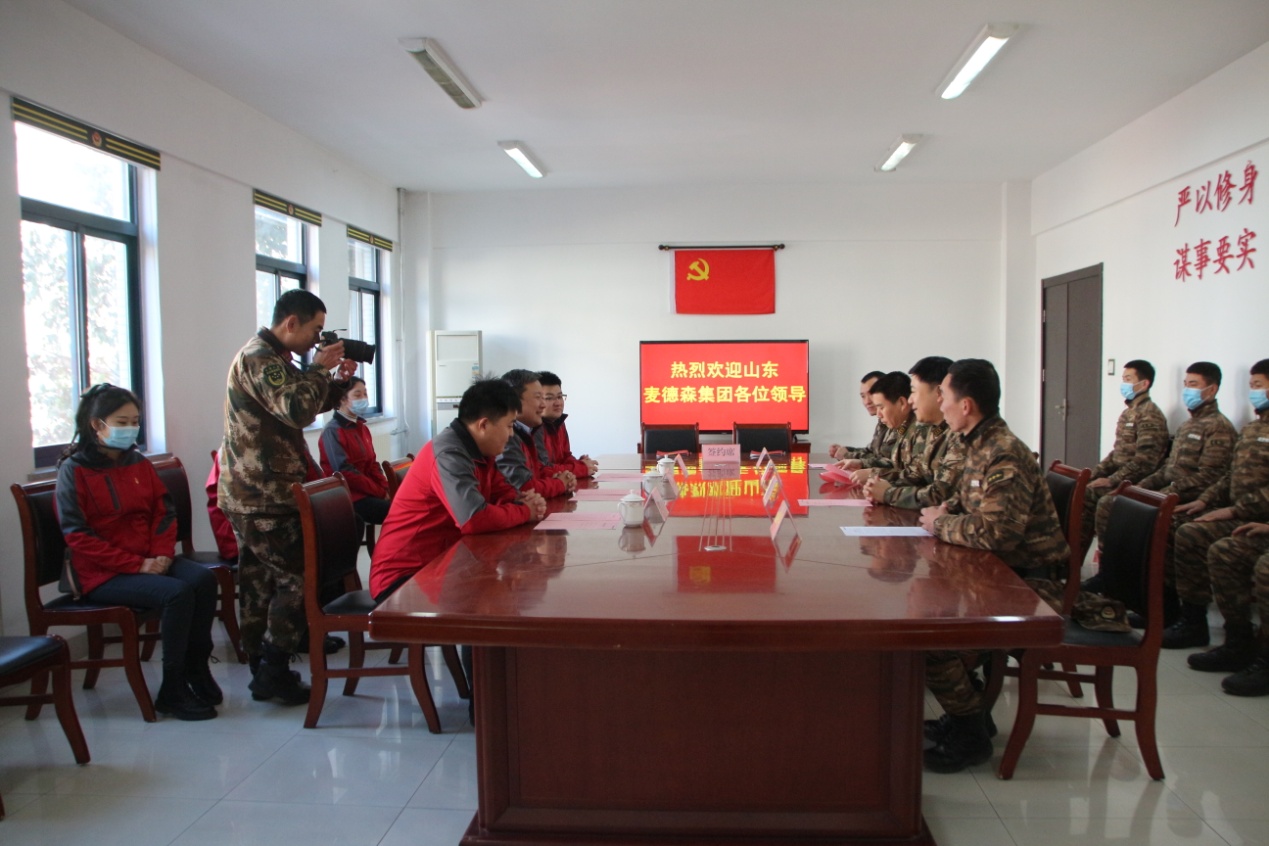 在武警济南支队讲解同志的带领下,大家依次参观了党员之家、军史长廊以及支队史馆,通过长廊中“信仰如炬”“使命如山”“征途如虹”等版块,详细了解了支队的发展建设、救灾抢险、扶贫攻坚等工作。座谈会上,支队政治工作部主任黄强介绍了按照习总书记建设一支“听党指挥、能打胜仗、作风优良”人民军队的强军思想和目标,加强政治建设和业务建设,培养“敢打仗,打胜仗”的新型人民军队的经验和做法。集团党支部书记王勇介绍了民营企业如何加强党建工作、以党建为引领,促进集团经济不断发展的做法和体会。支队副支队长赵猛就加强与麦德森团队共学共进和做好共建工作,更好地促进双方发展提出了要求和希望。