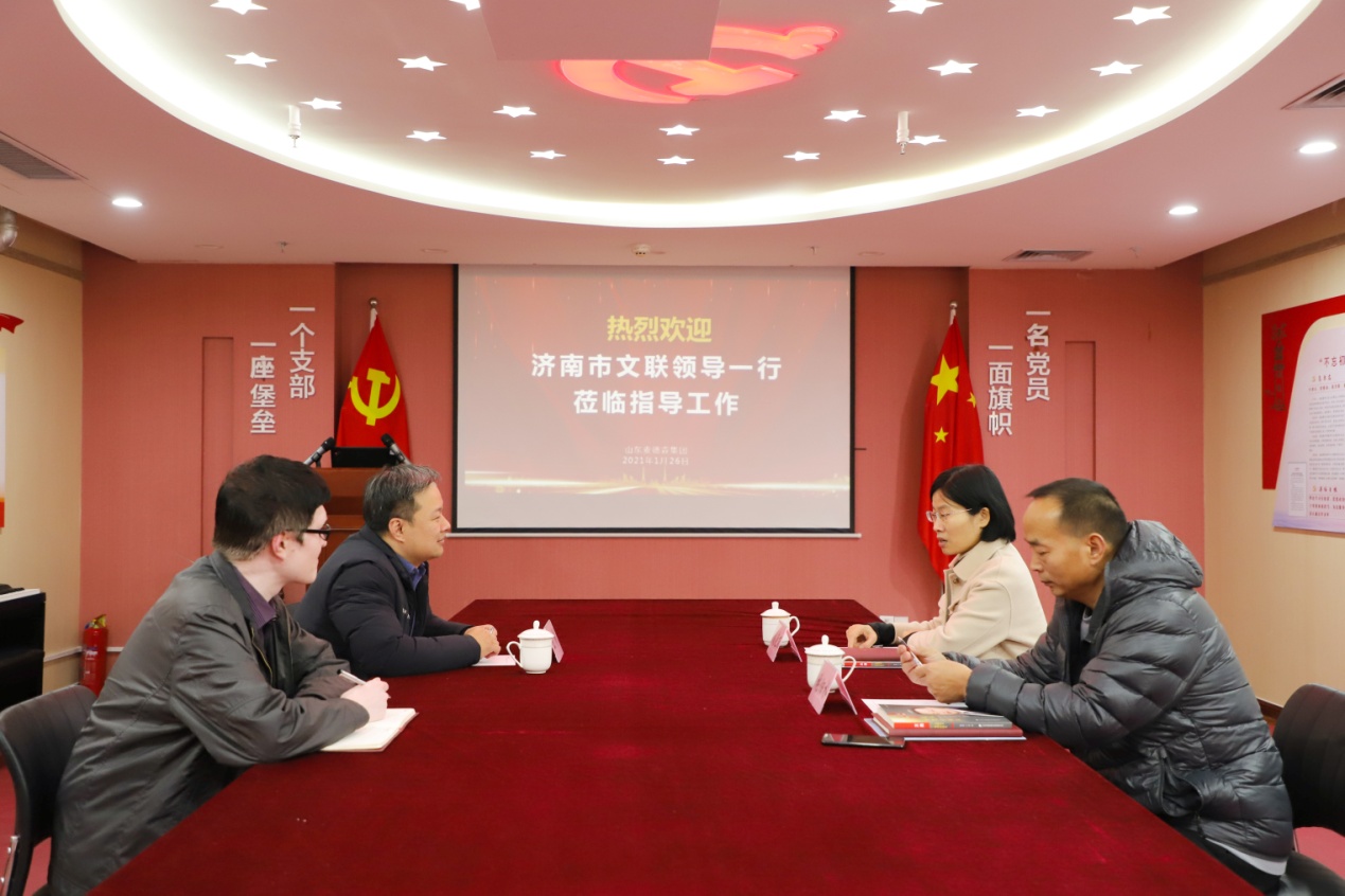 1月26日,济南市文联党组成员、副主席刘艳丽等莅临麦德森调研。集团党支部书记王勇博士等陪同调研。