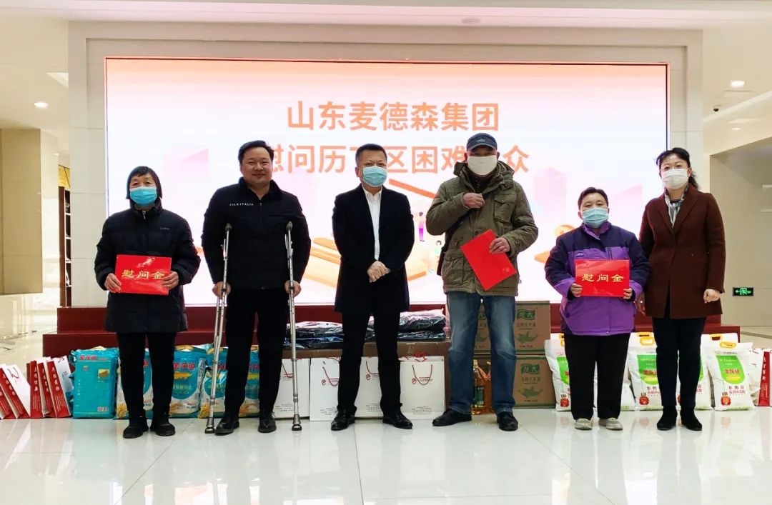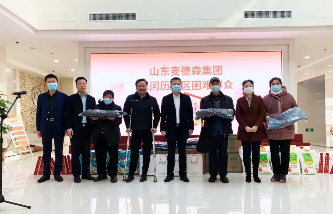 2月9日,必威平台慰问历下区困难群众活动在历下创益园举行,区政府副区长赵琳,区政协副主席、党组副书记石永先等出席活动。区政协常委、必威平台党支部书记王勇,集团执行董事王兴法,总经理张天君等代表麦德森集团向历下区困难群众发放总价值5万元的慰问品和慰问金,各街道办事处分管负责同志以及受助群众代表等参加活动。