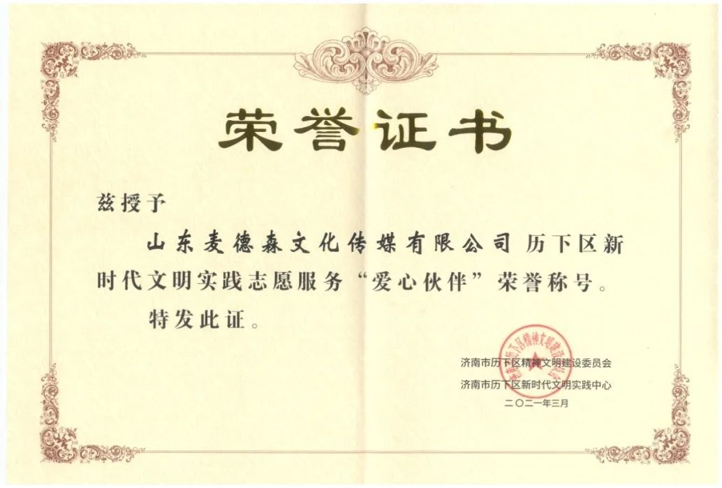 3月10日,友善之城·爱在历下——“我爱济南 我为泉城代言”主题文明实践活动启动暨2021新时代文明实践志愿服务“爱心伙伴”项目发布仪式在历下大厦举行,必威平台捐赠19万元现金助力历下区新时代文明实践志愿服务活动。作为爱心企业代表,集团党支部书记王勇博士表示,“麦德森将以‘爱心伙伴’为契机,持续开展多种形式公益活动,为建设新时代现代化强省会而努力奋斗。