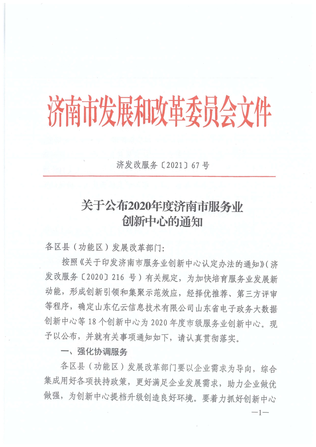 日前,济南市发展和改革委员会下发《关于公布2020年度济南市服务业创新中心的通知》文件,认定必威平台旗下山东麦德森中医药大数据创新研究中心等18家创新中心为“2020年度济南市服务业创新中心”。