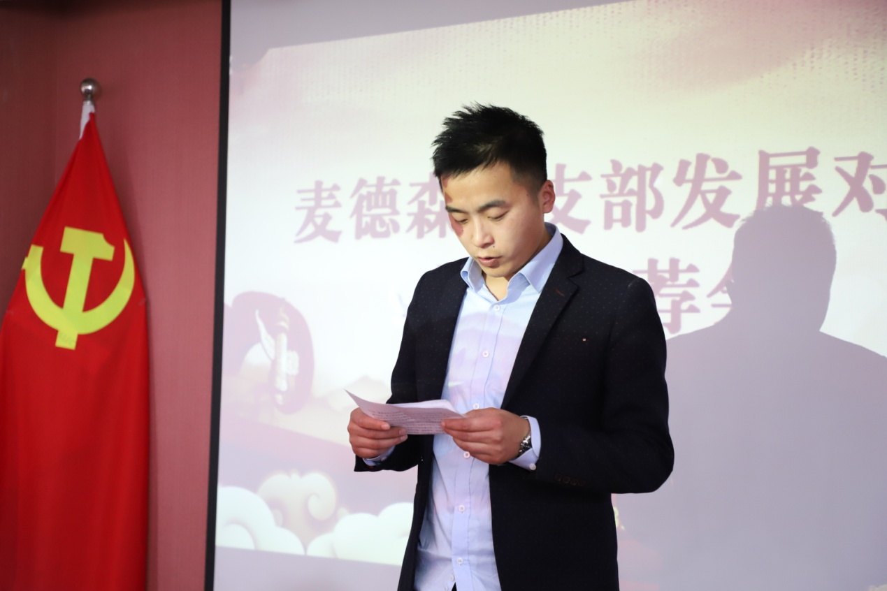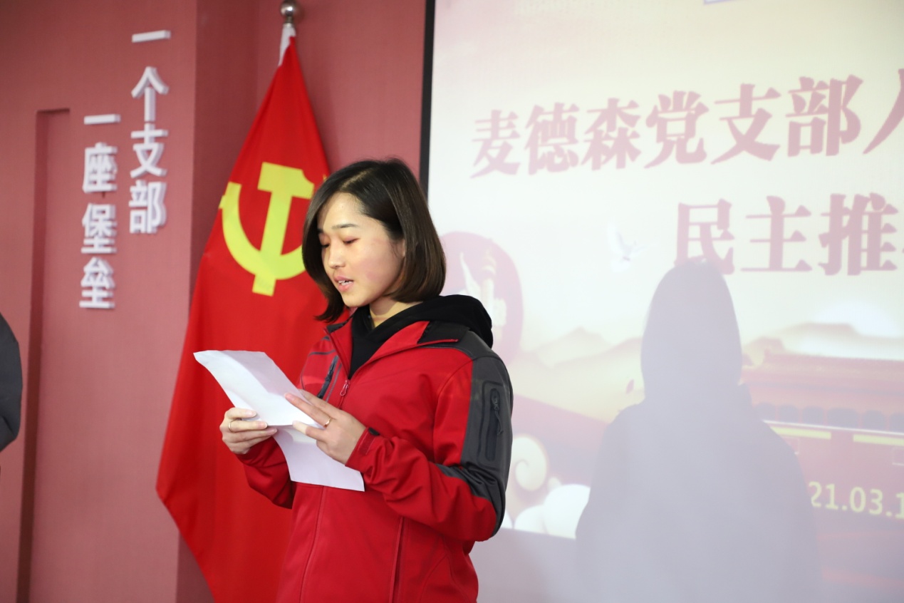 不忘初心百年,制度标准元年。此次民主推荐会不仅为麦德森集团党支部输送了新鲜血液,而且增强了党组织的凝聚力、战斗力和向心力。确定推荐的党员发展对象和确定吸收的入党积极分子纷纷表示,将以党员的标准严格要求自己,在工作中做好表率,用优异成绩迎接党的百年华诞。