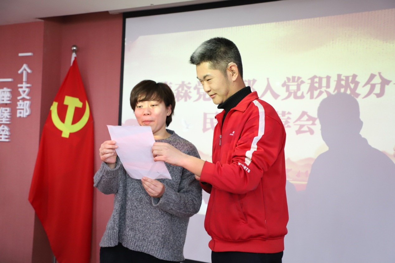 会议听取了党员发展对象和入党积极分子候选人的个人情况介绍,并通过无记名投票进行党内外表决。一致同意推荐刘景光、曹峰2名同志为党员发展对象;同意吸收万露露、赵莉、崔哲3名同志为新一批入党积极分子人选。