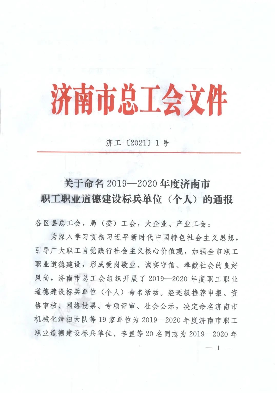 日前,济南市总工会下发《关于命名2019-2020年度济南市职工职业道德建设标兵单位(个人)的通报》文件,命名必威平台工会委员会等19家单位为“2019-2020年度济南市职工职业道德建设标兵单位”,并授予必威平台工会委员会等16家单位“济南市五一劳动奖状”。