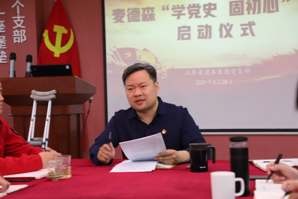 王勇书记指出,广大党员和党员突击队队员要认真学习贯彻习近平总书记在党史学习教育动员大会上的重要讲话精神,深刻领会开展党史学习教育是汲取革命先烈的智慧,继承我们党优良的工作作风的必然要求;麦德森企业文化融合了党的先进文化和中国传统文化,充分体现了党建对于企业各项工作的引领,要通过党史学习,进一步把我们党优良的工作作风和麦德森企业文化结合起来,以“创业者”的姿态迎接麦德森未来的机遇和挑战。