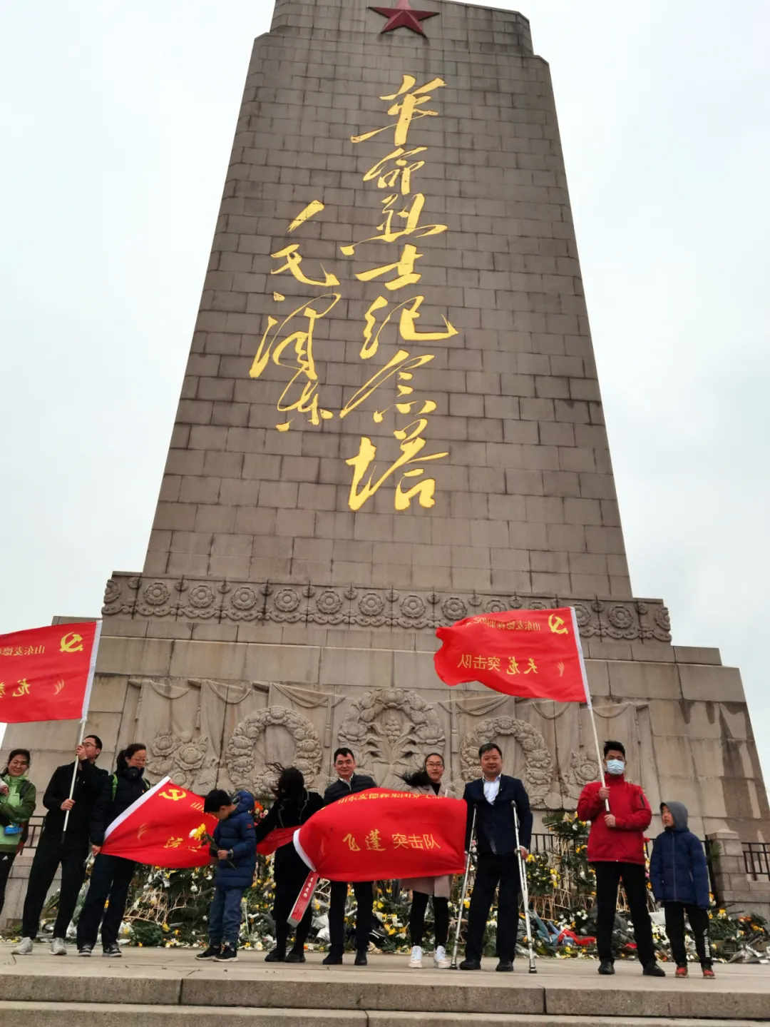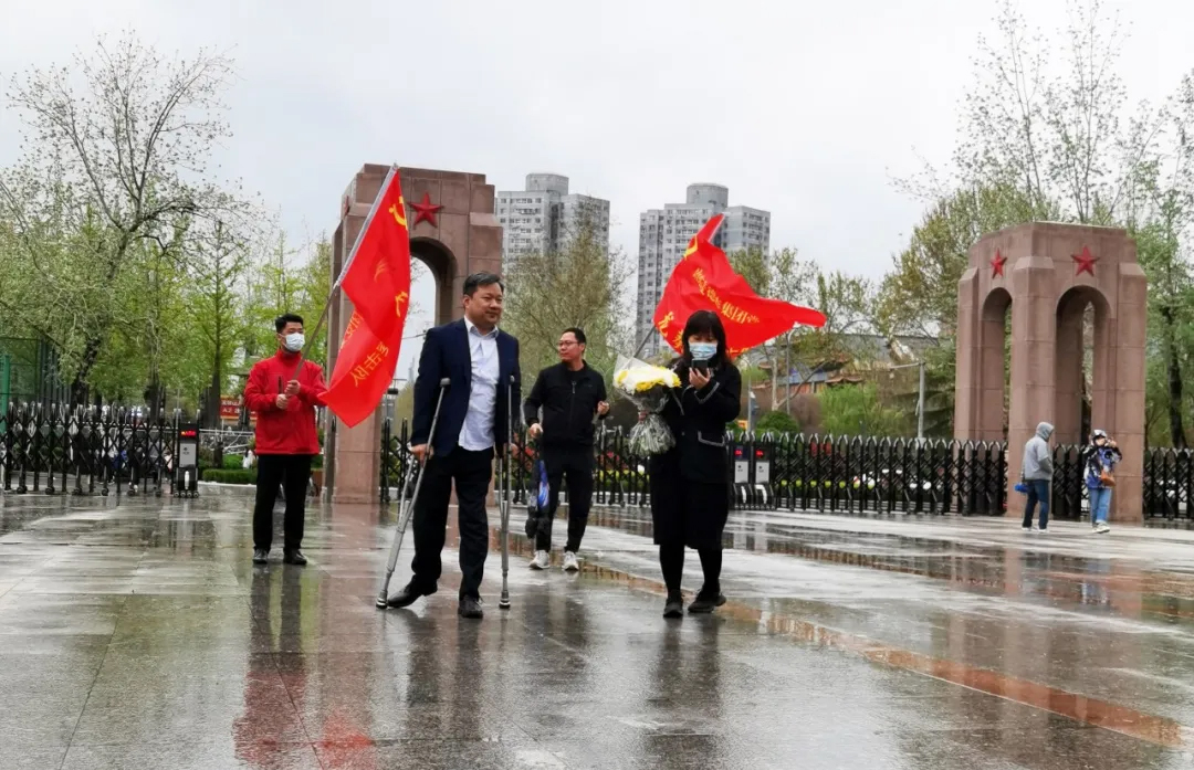 活动中,王勇书记拄着双拐,和队员们一起踏着一层一层台阶登上纪念塔,他表示,一寸山河一寸血,一抔热土一抔魂。无数抛头颅、洒热血的英雄烈士,成就了我们今天的美好生活,我们要牢记革命先烈的奉献精神、奋斗精神、牺牲精神,牢记新中国的来之不易。