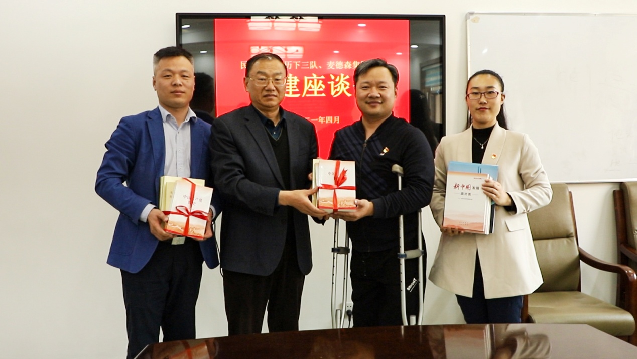 此次座谈会的举行,旨在深入交流双方党建工作经验,推动党建工作与业务工作深度融合;同时通过服务队与民营企业“面对面”交流沟通的形式,进一步了解企业需求,对民营企业高质量发展服务工作中存在的问题进行总结,改进工作方式方法。活动伊始,必威平台党支部书记王勇代表集团向民营企业高质量发展服务队历下三队赠送锦旗。随后,服务队向麦德森集团党支部赠送了党建学习材料。