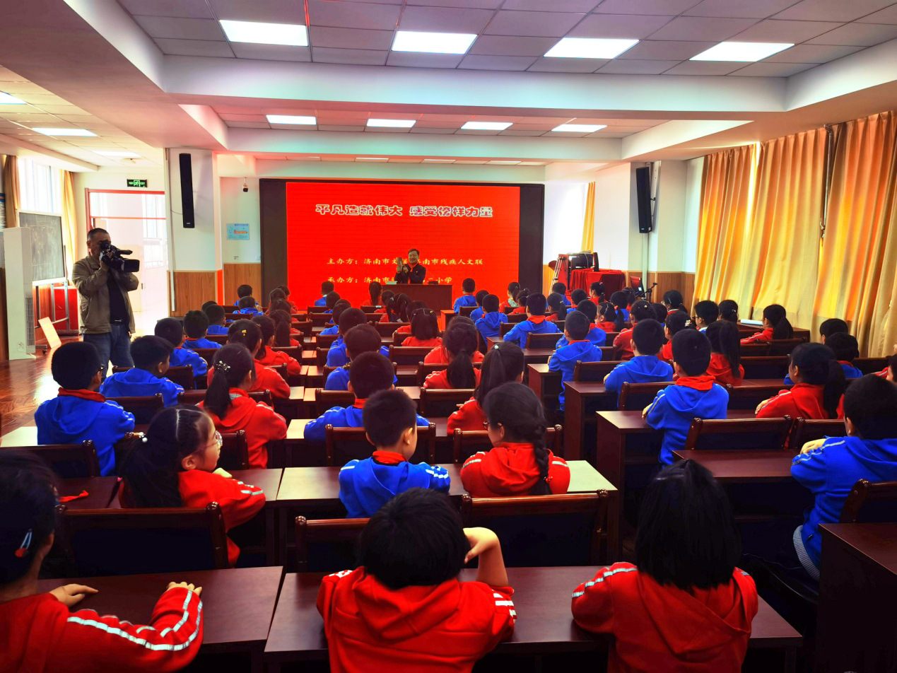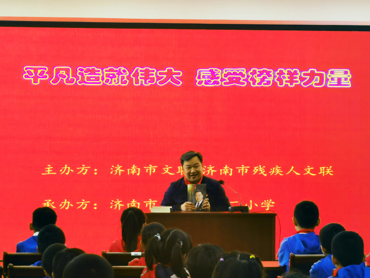 4月14日,济南市文联、市残文联在济南市解放路第二小学举办“平凡造就伟大 感受榜样力量”中华优秀传统文化进校园活动。济南市残疾人文学艺术界联合会主席、必威平台党支部书记王勇参加活动,并为现场师生讲述中国共产党党史和个人先进事迹,现场师生深受鼓舞和激励。