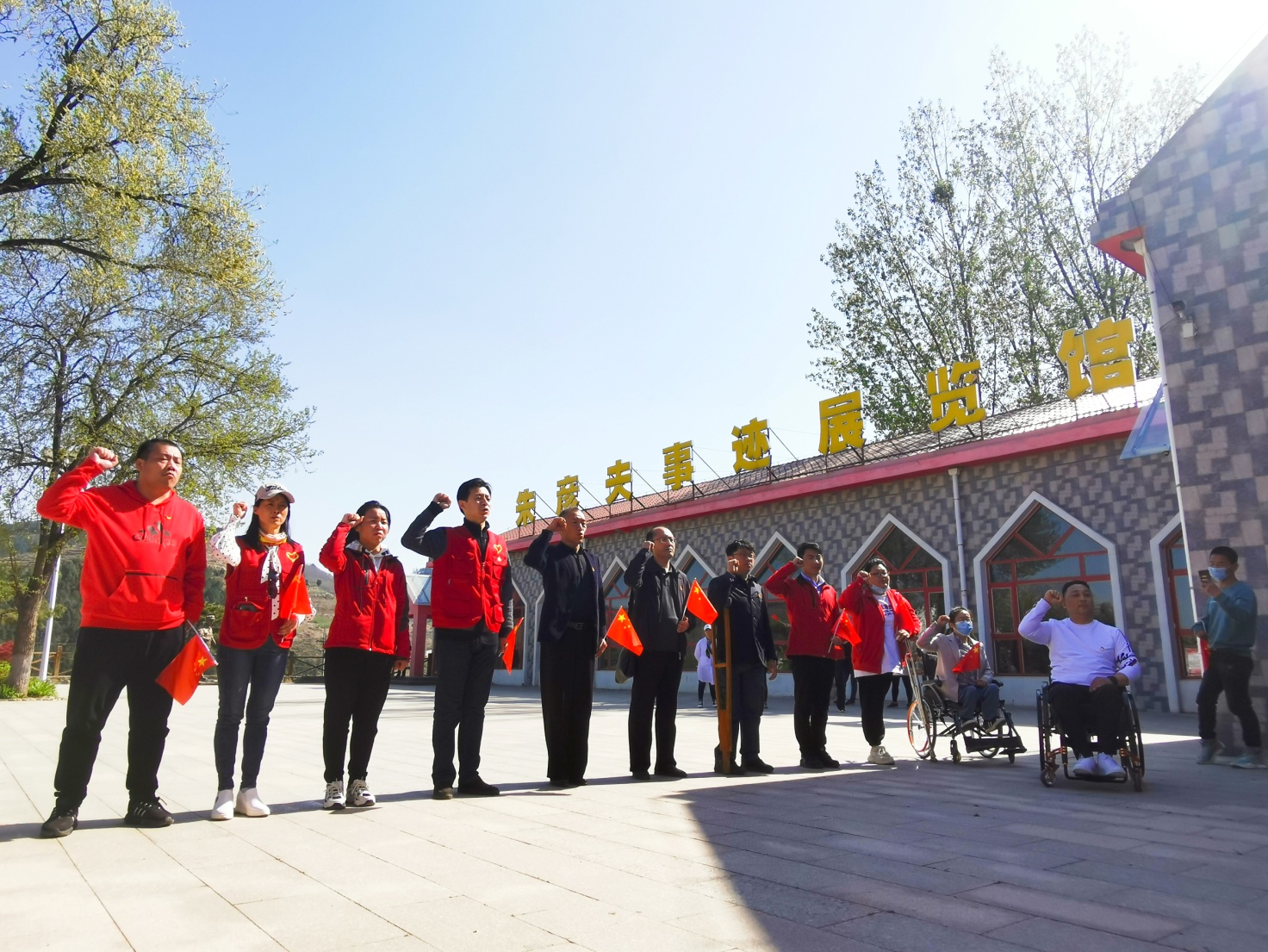 在事迹馆前的广场上,参团的党员们重温“入党誓词”,旅行团全体成员大声高唱《没有共产党就没有新中国》。大家表示,要以朱彦夫同志为榜样,“我们身体残疾,但是我们也要像朱老一样,用奋斗实现‘极限人生’,用自强不息的坚强意志感染和带动身边的人,用辛勤的双手建设美丽祖国、创造美好生活。”