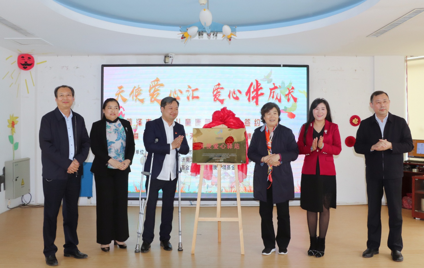 菏泽市儿童福利院、菏泽市返乡创业济南服务站、菏泽市招才引智济南工作站魅力巾帼委员会联合揭牌成立“天使爱心驿站”。