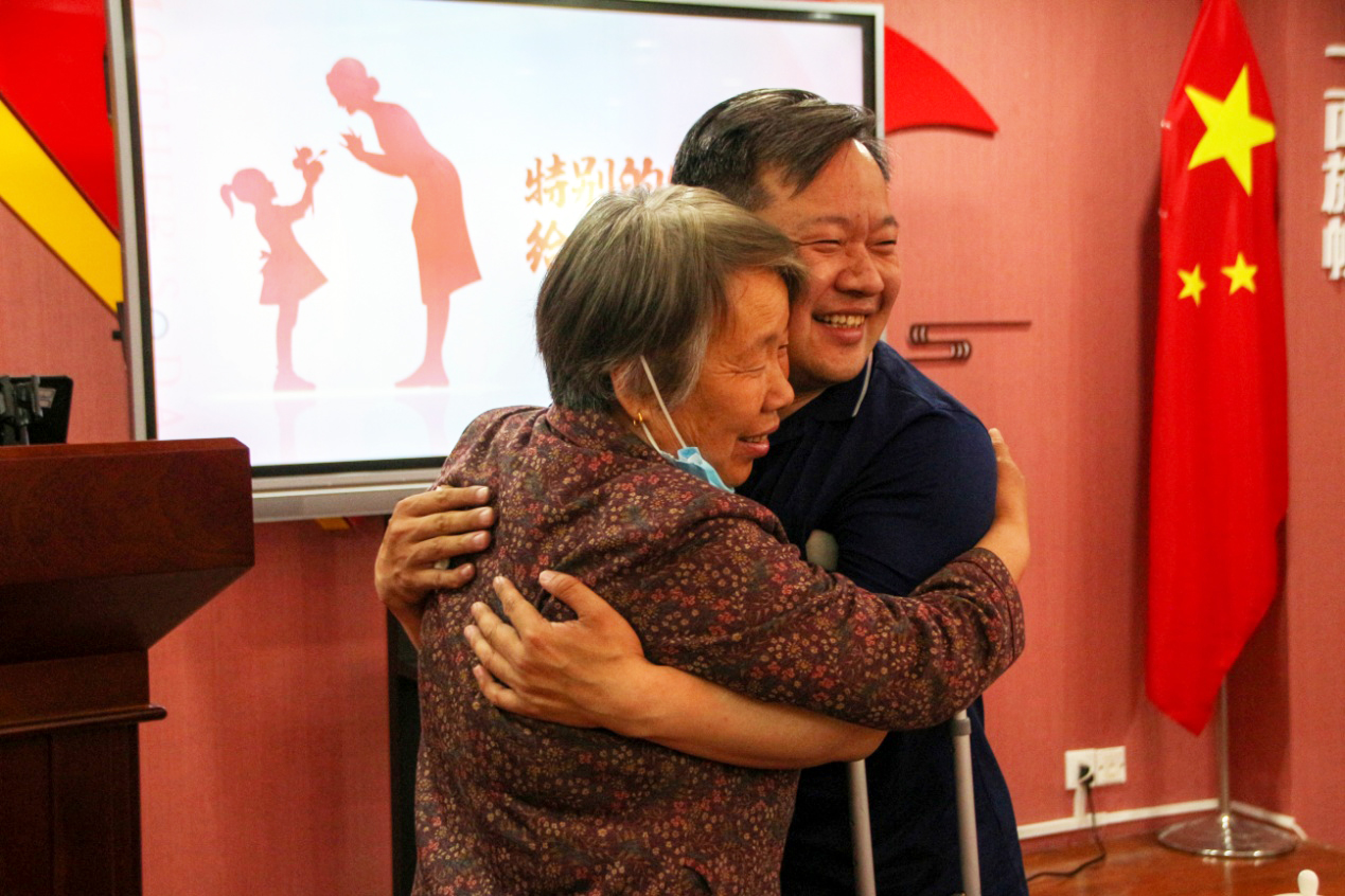 在集团工会的诚挚邀请下,王勇书记的母亲也来到活动现场。在妈妈面前,王勇书记露出了孩童般笑容。母子之间的一个拥抱、几句对话,浓情爱意自然流露。