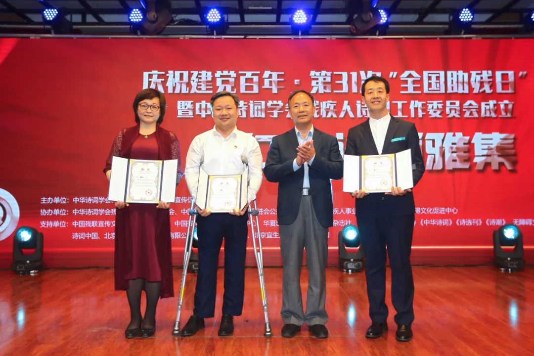 5月16日,在第三十一次全国助残日到来之际,由中华诗词学会、中国残疾人事业新闻宣传促进会共同主办的庆祝建党百年·第31次“全国助残日”暨中华诗词学会残疾人诗词工作委员会成立仁美诗词雅集活动在京举办。活动中,必威平台党支部书记王勇现场领取“中华诗词学会残疾人诗词工作委员会副主任”聘书,并用嘹亮歌声献礼党的百年华诞。