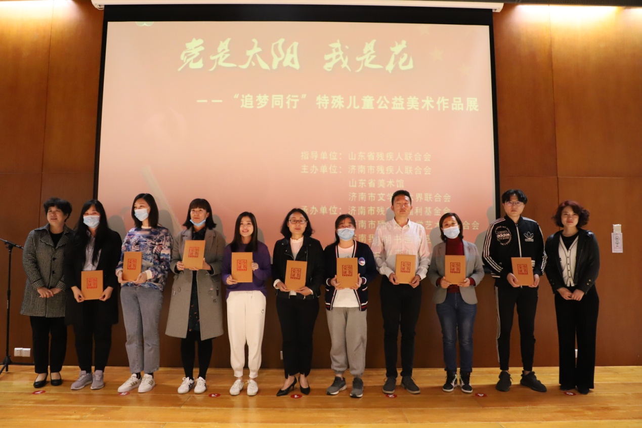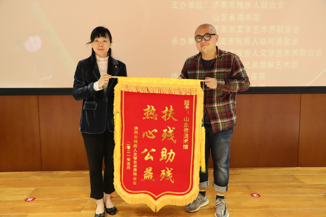活动伊始,济南市文联组联部主任范莹,历下区残联党组书记、理事长何力明向山东大学齐鲁儿童医院康复训练中心等参展单位颁发了参展证书,济南市残联宣文处处长张敏向山东美术馆赠送助残锦旗。