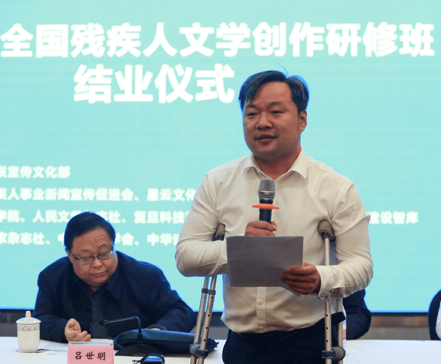 中国残联副主席吕世明出席结业式,发表讲话。中国残疾人事业新闻宣传促进会、星云文化教育公益基金会、上海市残联、上海国际康复活动中心等单位负责同志出席。