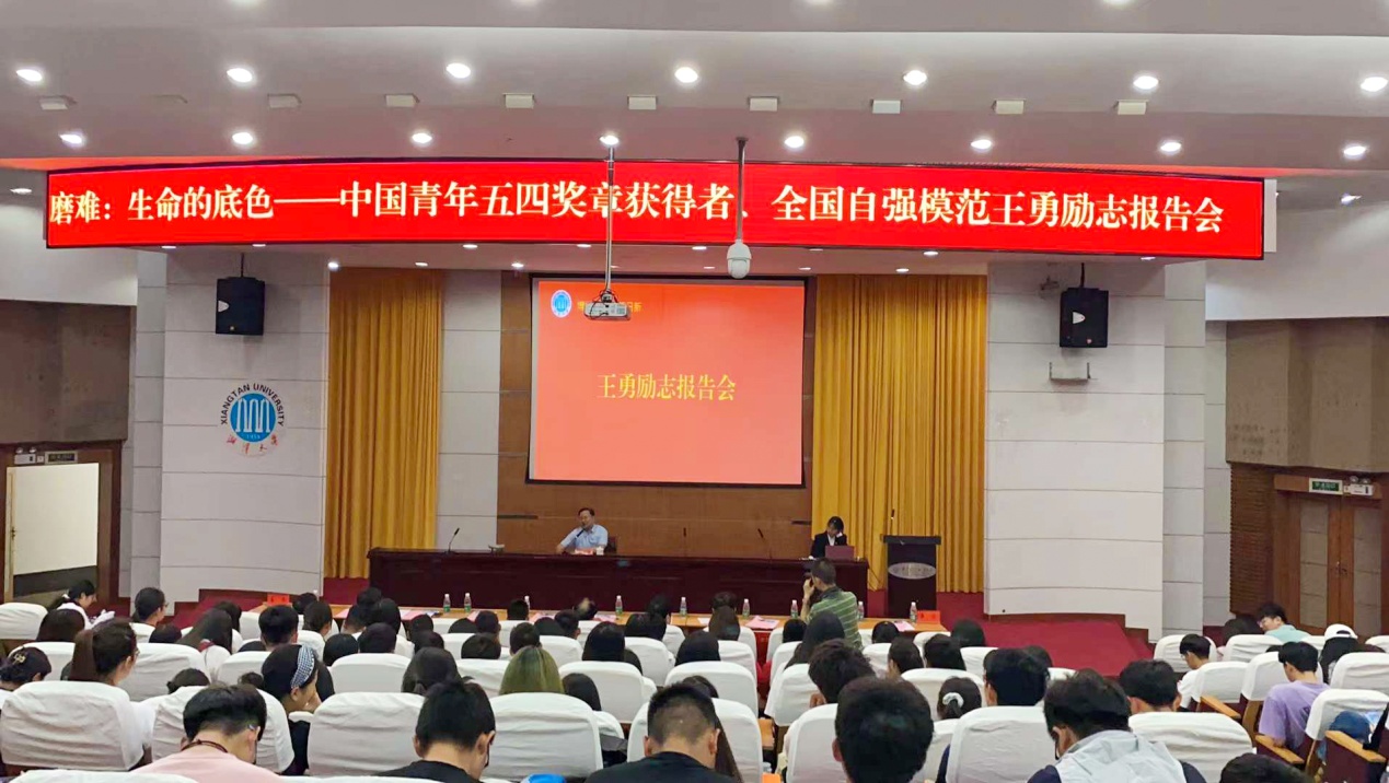 “我感恩残疾,感恩磨难”。在随后的事迹报告会上,王勇书记在题为《磨难:生命的底色》的演讲中,对青年学生提出期许:拥有更加积极的心态,思考和追寻生命的意义和价值;拥有一颗感恩的心,感知世界并用自己的付出与奉献温暖身边的每一个人;拥有顽强的意志,面对和战胜生活中的磨难。