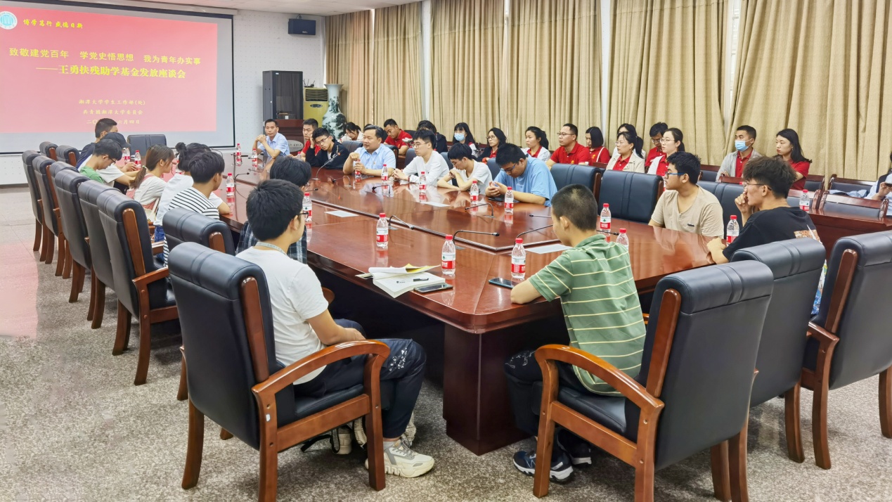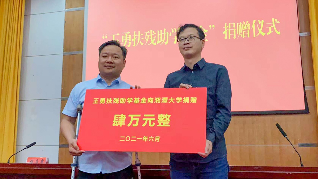 6月4日,“致敬建党百年 学党史悟思想 我为青年办实事”王勇扶残助学基金发放座谈会暨王勇励志报告会在湖南湘潭大学举行。活动中,王勇书记为湘潭大学学子送了一份“励志套餐”——捐赠励志基金,作励志报告,赠送励志书籍。