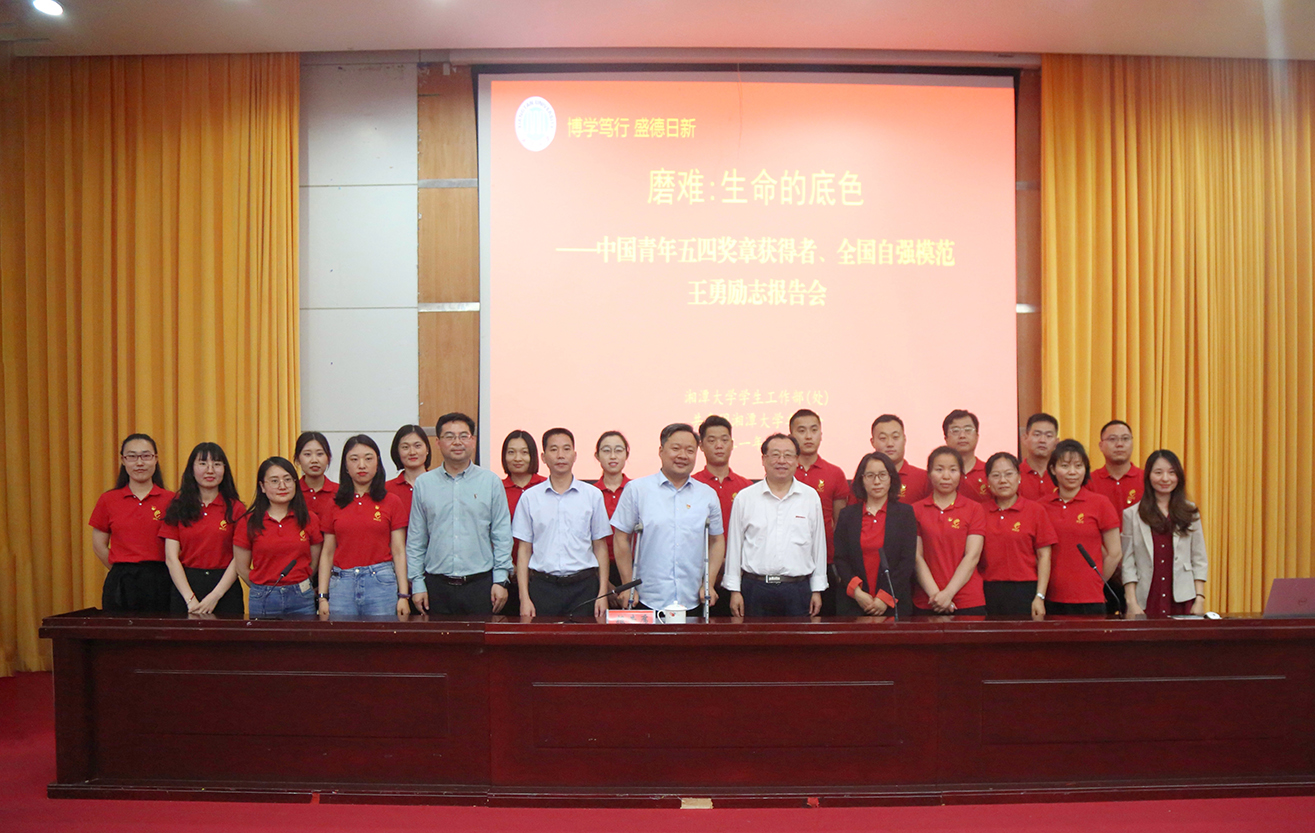 湘潭大学副校长刘建平,中国青年五四奖章获得者、全国道德模范、湘潭大学校友杨怀保,各学院师生代表近300人参加报告会。麦德森集团支部党员代表、突击队队员代表等20余人参加活动。