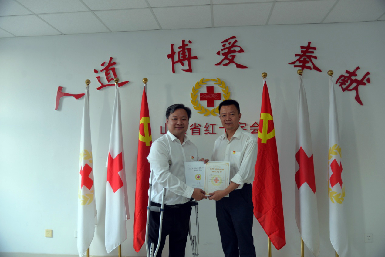 随后,在省红十字会工作人员的指导下,麦德森党员代表和突击队队员代表现场填写了《山东省遗体(角膜)捐献申请登记表》。