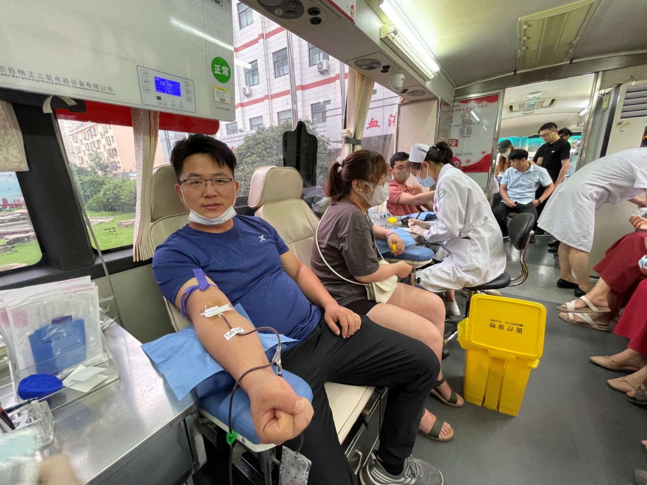 活动现场,在血液中心工作人员的引导下,麦德森党员等分批登上采血车,在完成个人身体健康情况例行检查后,纷纷伸出手臂,将自己炙热的血液无私地献给崇高的医疗事业,将自己的满腔热情无私地投入到全心全意为人民服务的伟大征程。