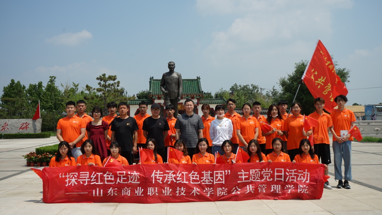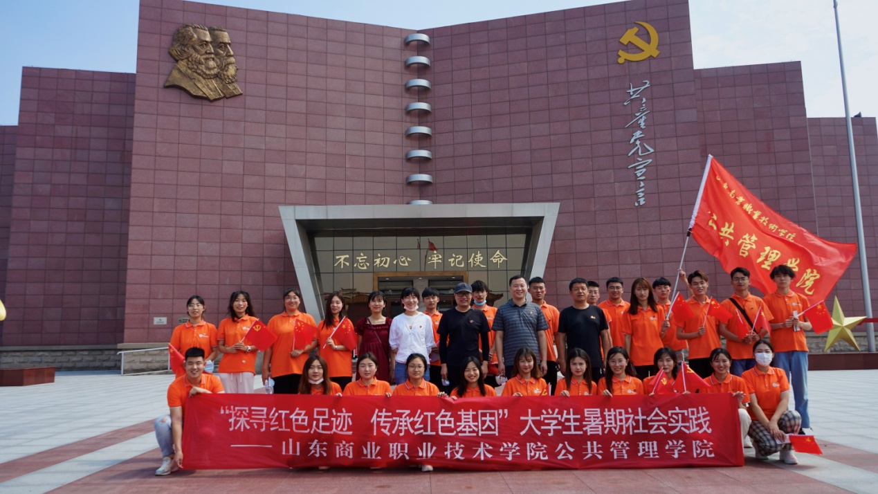 7月12日-13日,必威平台旗下山东麦德森国际旅行社组织山东商业职业技术学院公共管理学院师生30余人赴东营广饶大王镇《共产党宣言》纪念馆、中共刘集支部旧址和滨州杨柳雪不忘初心党性教育基地等红色坐标开展“探寻红色足迹,传承红色基因”主题党日活动和大学生暑期社会实践活动 。山东商职学院公共管理学院师生代表参加活动。