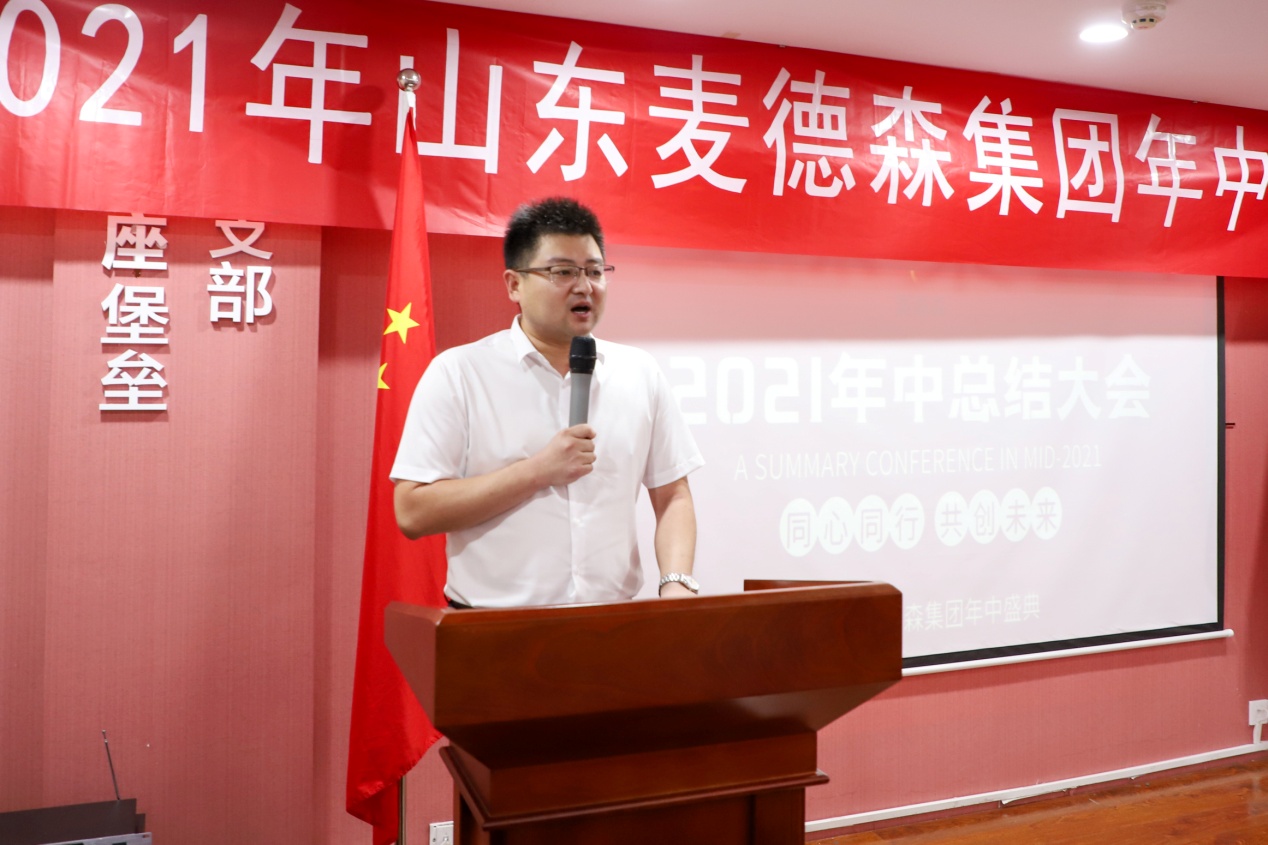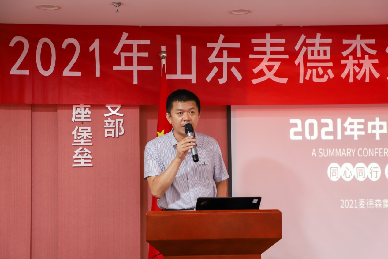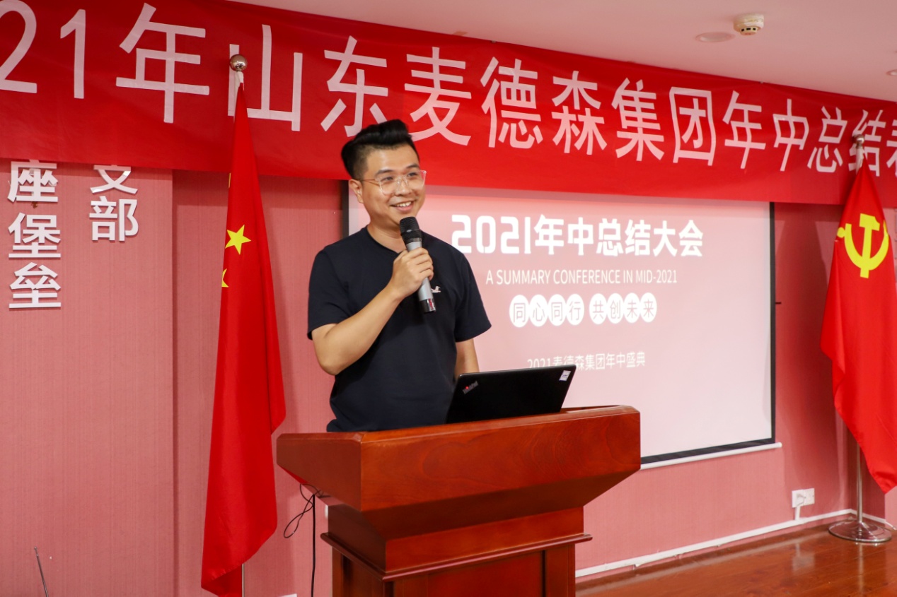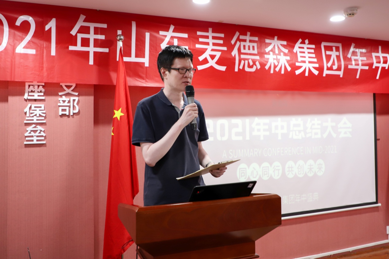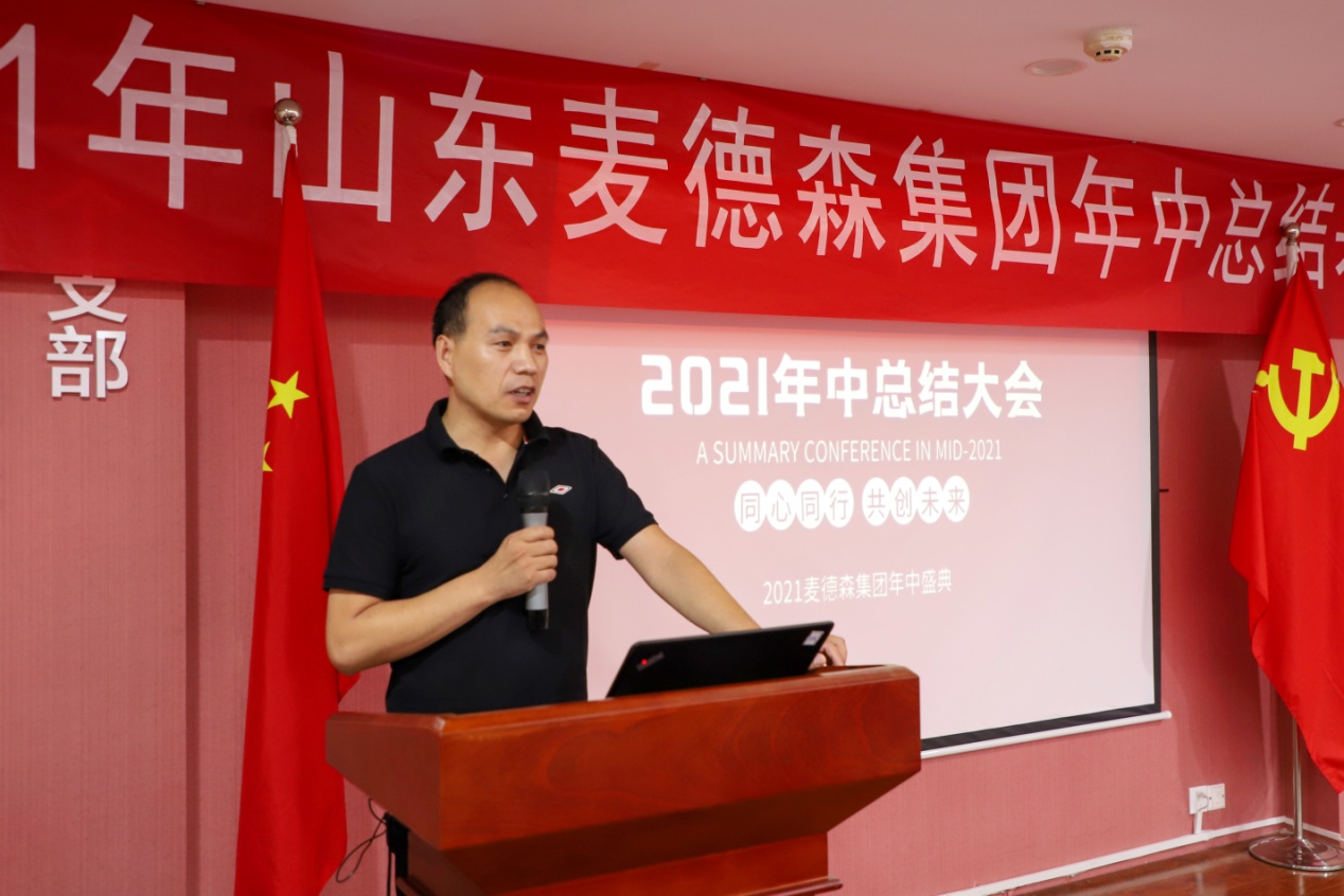 会议伊始,集团执行董事王兴法致辞。他指出,2021年上半年,麦德森上下同心,年初预期的工作目标基本完成;同时,在集团“不忘初心百年、制度标准元年”里,各部门积极完善管理制度、激励制度,保障了各项工作有章可循、有据可依。他强调,在下半年工作中,要切实提升责任意识、部门间团队协作意识,夯实人才培养机制和干部梯队建设,“拿出最好的状态、拼出最好的自己”,力争年底提交更优异答卷。