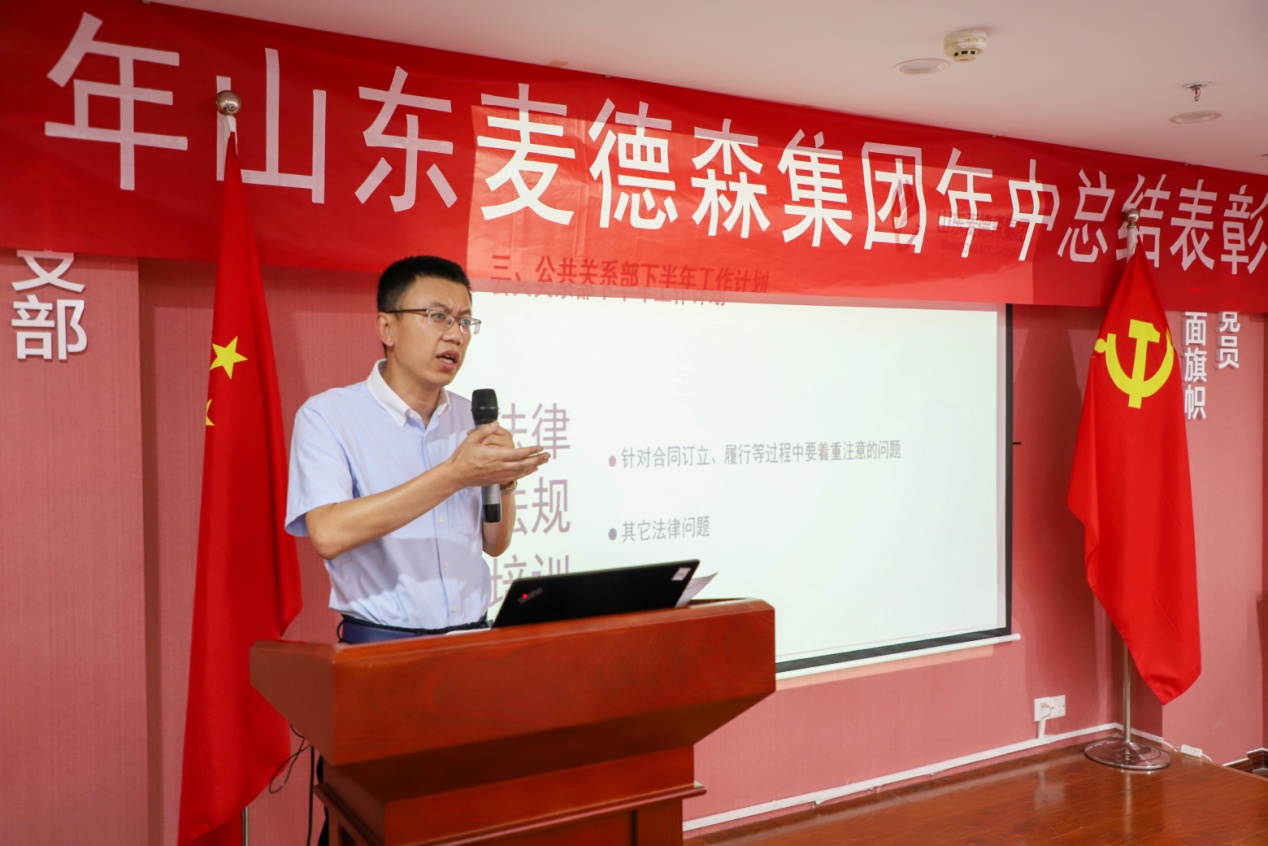 8月2日,在全面落实疫情常态化防控的各项要求基础上,“必威平台(下称‘麦德森’)2021年年中总结表彰会”在总部党群活动室举行,集团旗下各子公司、职能部门负责人就半年来的工作进行了述职。党支部书记王勇在对集团半年来取得的成绩给予充分肯定,为每家子公司送上掌声。
