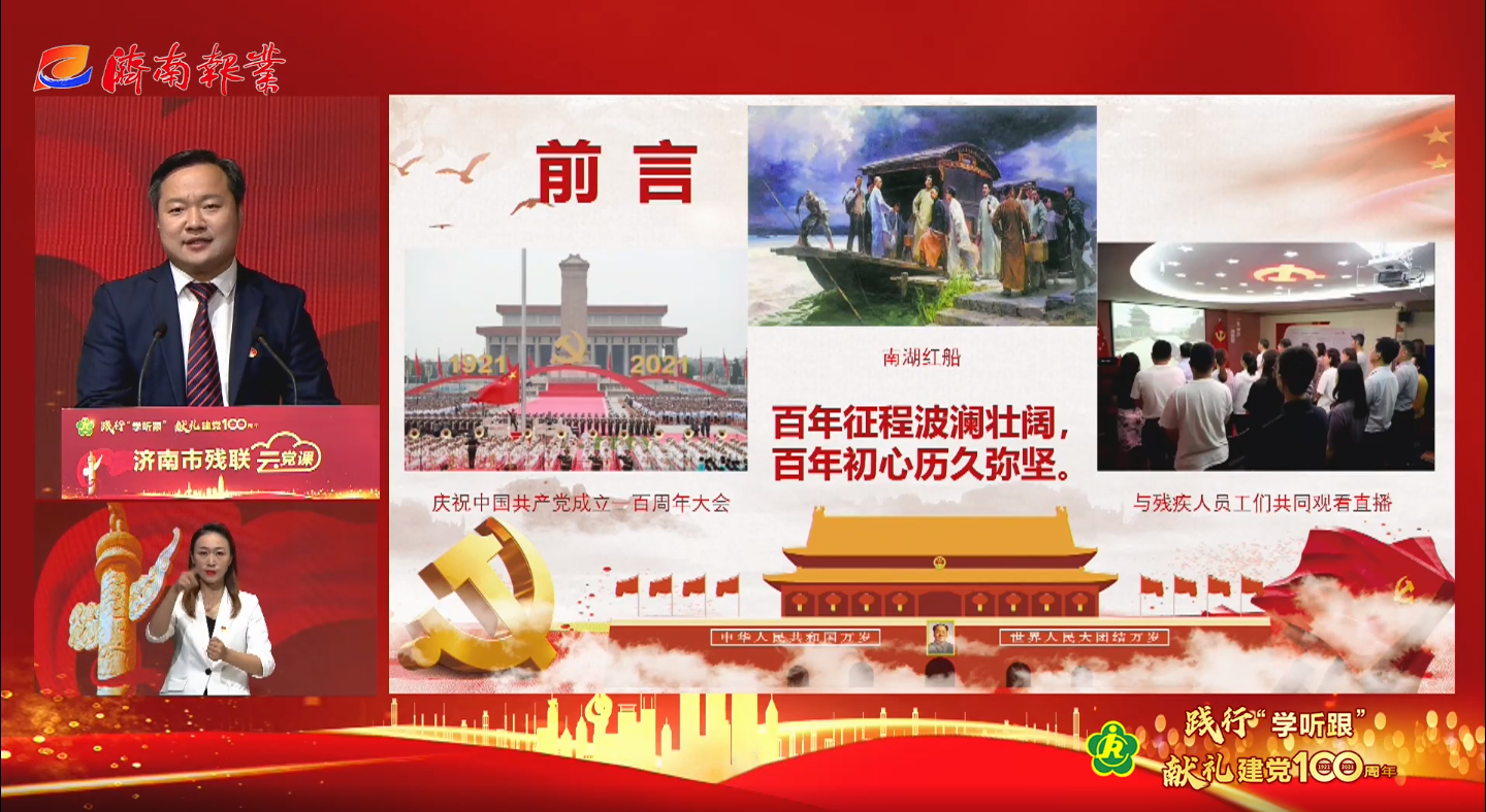 为创新活动方式,让广大残疾人群众喜欢看、听得懂,激发残疾人工作者干事创业热情和激情,引导广大残疾人听党话、感党恩、跟党走。今年3月份,济南市残联启动了“践行‘学听跟’献礼建党100周年”“云党课”系列活动。活动开展以来,受到社会各界及残疾人工作者、残疾人兄弟姐妹们的广泛关注。