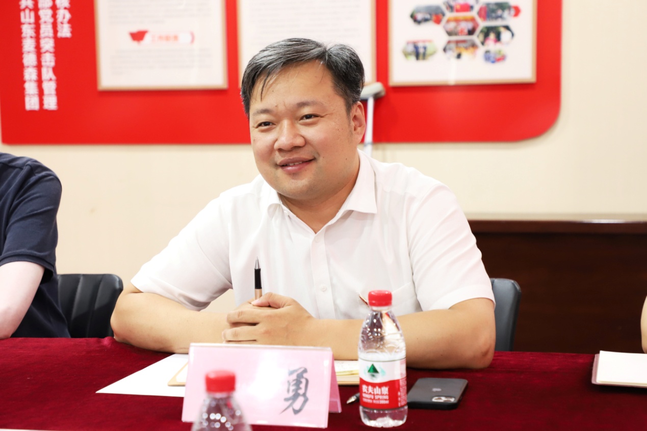 随后,活动双方进行了交流座谈。王勇书记详细介绍了公司各产业板块建设发展现状与未来规划,汇报了集团以党员为核心的党员突击队建设、以党员突击队为核心的“长鼓型”党建工作模式,并讲述了自己求学创业的奋斗事迹。