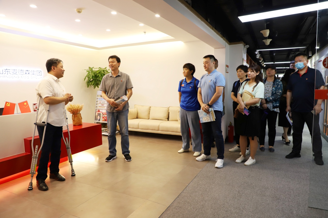 座谈会结束后,在王勇书记的引导下,区教体局机关第六支部党员代表对麦德森集团总部进行了参观。