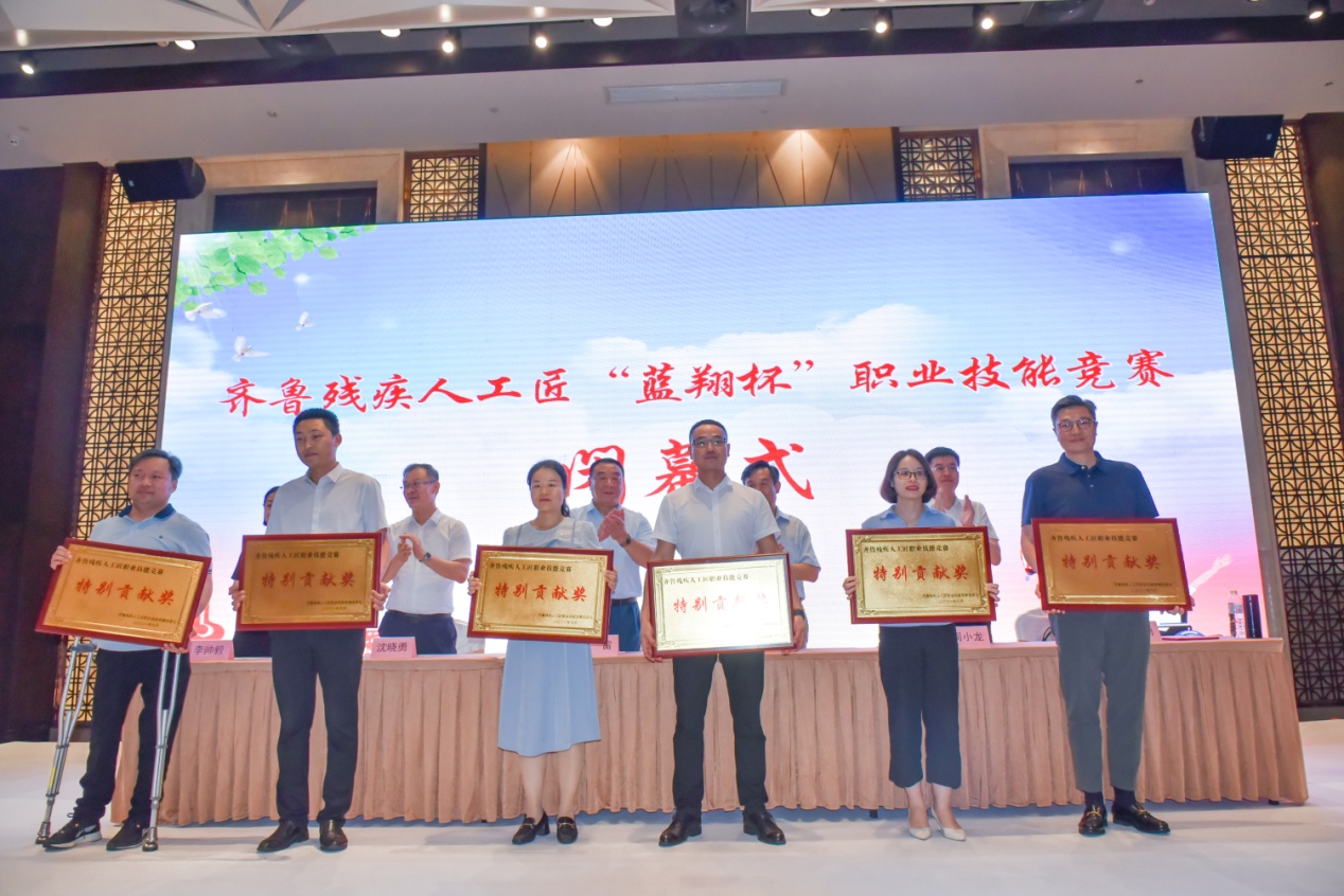 本次竞赛由省残联、省人力资源社会保障厅、省总工会主办,活动现场,赛事组委会为麦德森集团等6家单位颁发了“特别贡献奖”荣誉牌匾。