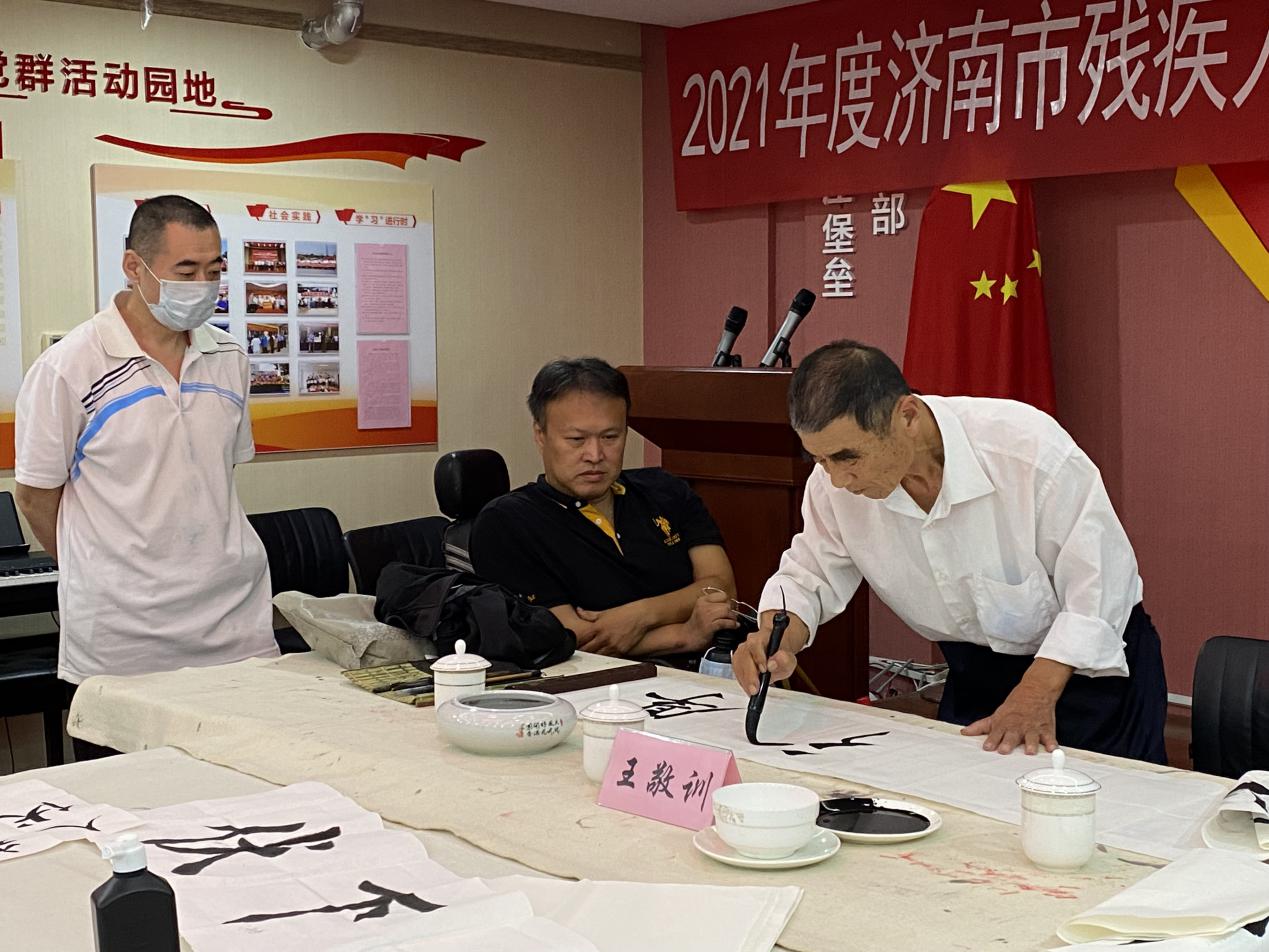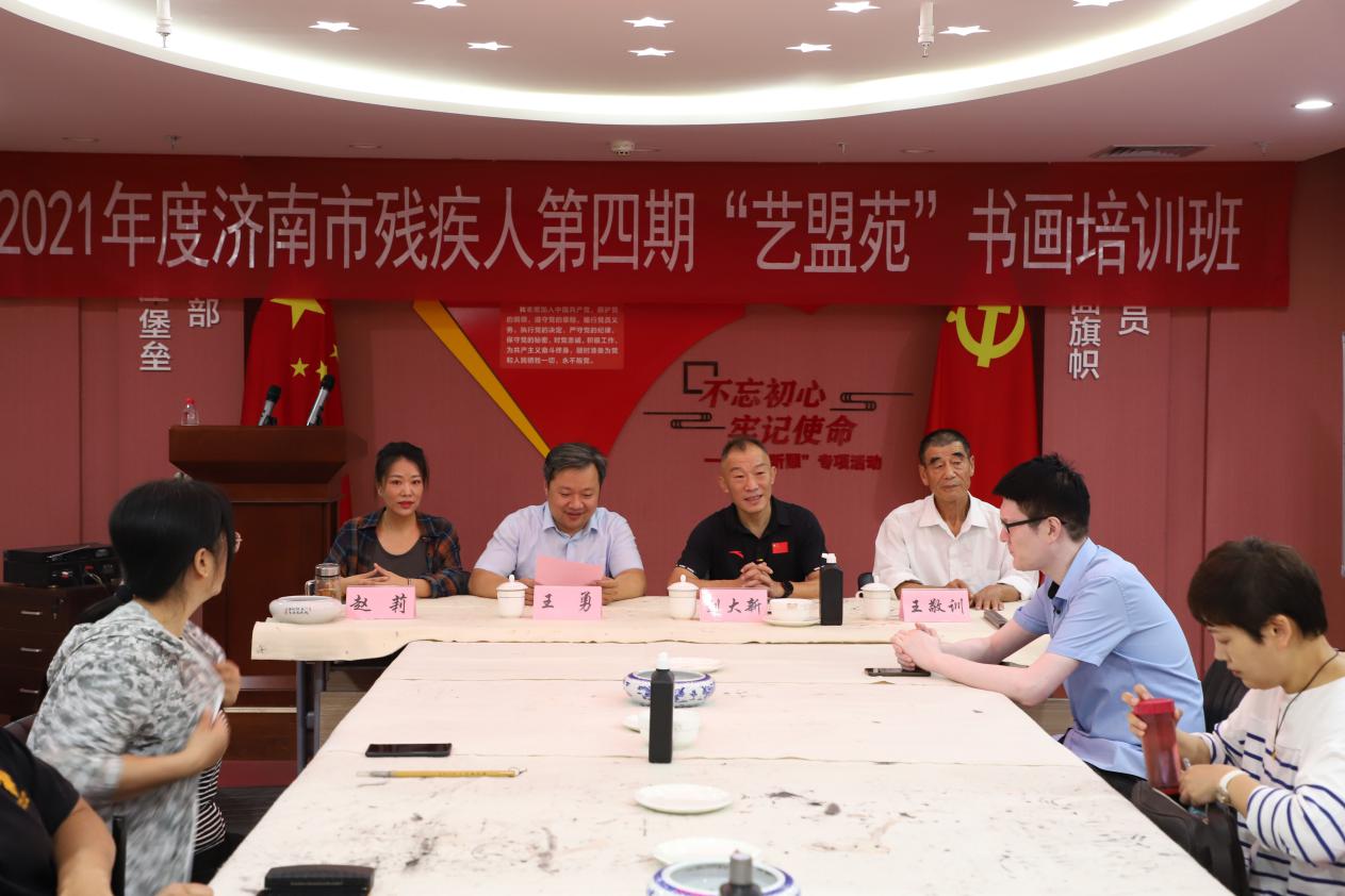 开班仪式特邀市残文联书法家协会王敬训老师现场授课,市残联宣文处副处长刘大新,市残文联主席、麦德森集团党支部书记王勇等出席,来自济南市各区县近20名学员参加开班仪式。