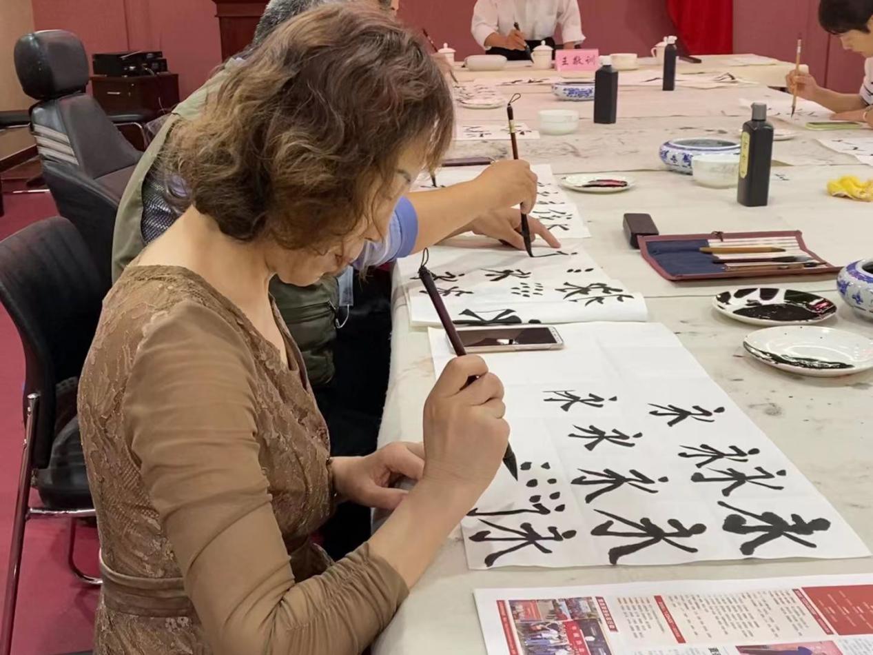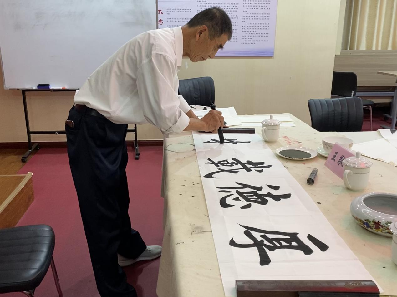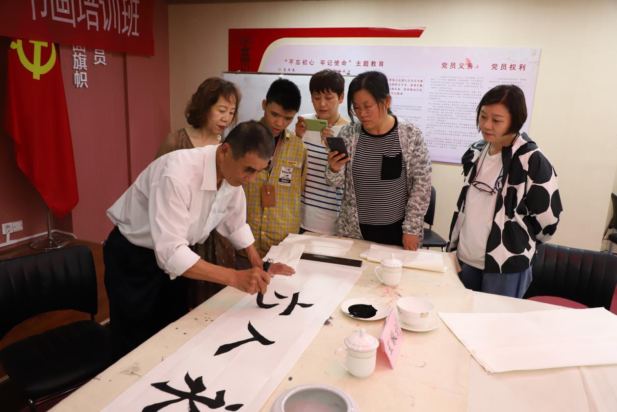 授课阶段,王敬训老师对学员提出两点要求:一是希望学员能够学习王勇书记身残志坚的奋斗精神,在艺术学习中力求持之以恒;二是坚持艺术学习培养心性,在学习中“善养浩然之正气”、保持心灵“虚静为一”的纯粹境界,领悟人生真谛、提升书画技艺。随后,王敬训老师对正楷“永”字书写方式进行了详细讲解。