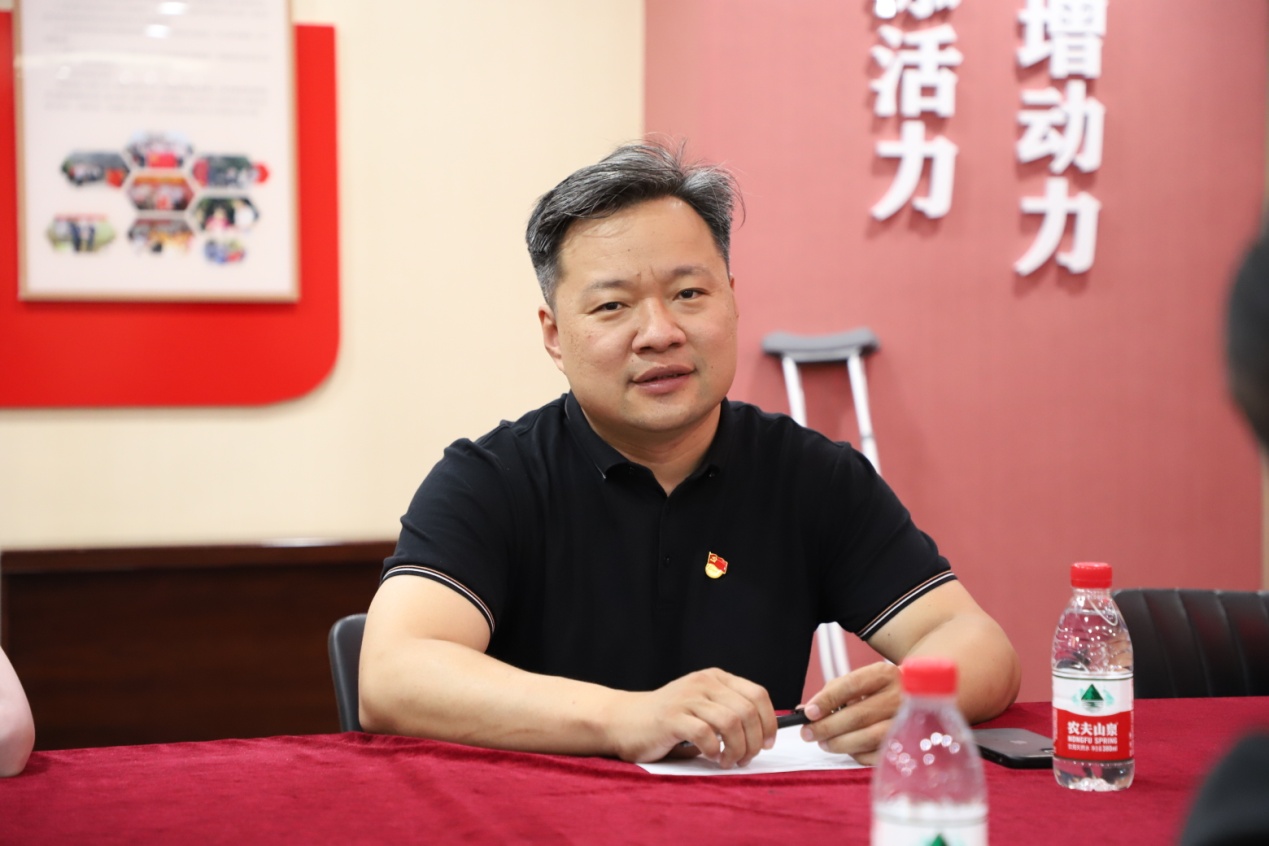 王勇详细介绍了集团以党员为核心的党员突击队建设、以党员突击队为核心的“长鼓型”党建工作模式,并就“民营企业为什么要抓党建”“民营企业如何抓党建”等内容与盲导中心支部党员代表们进行交流。