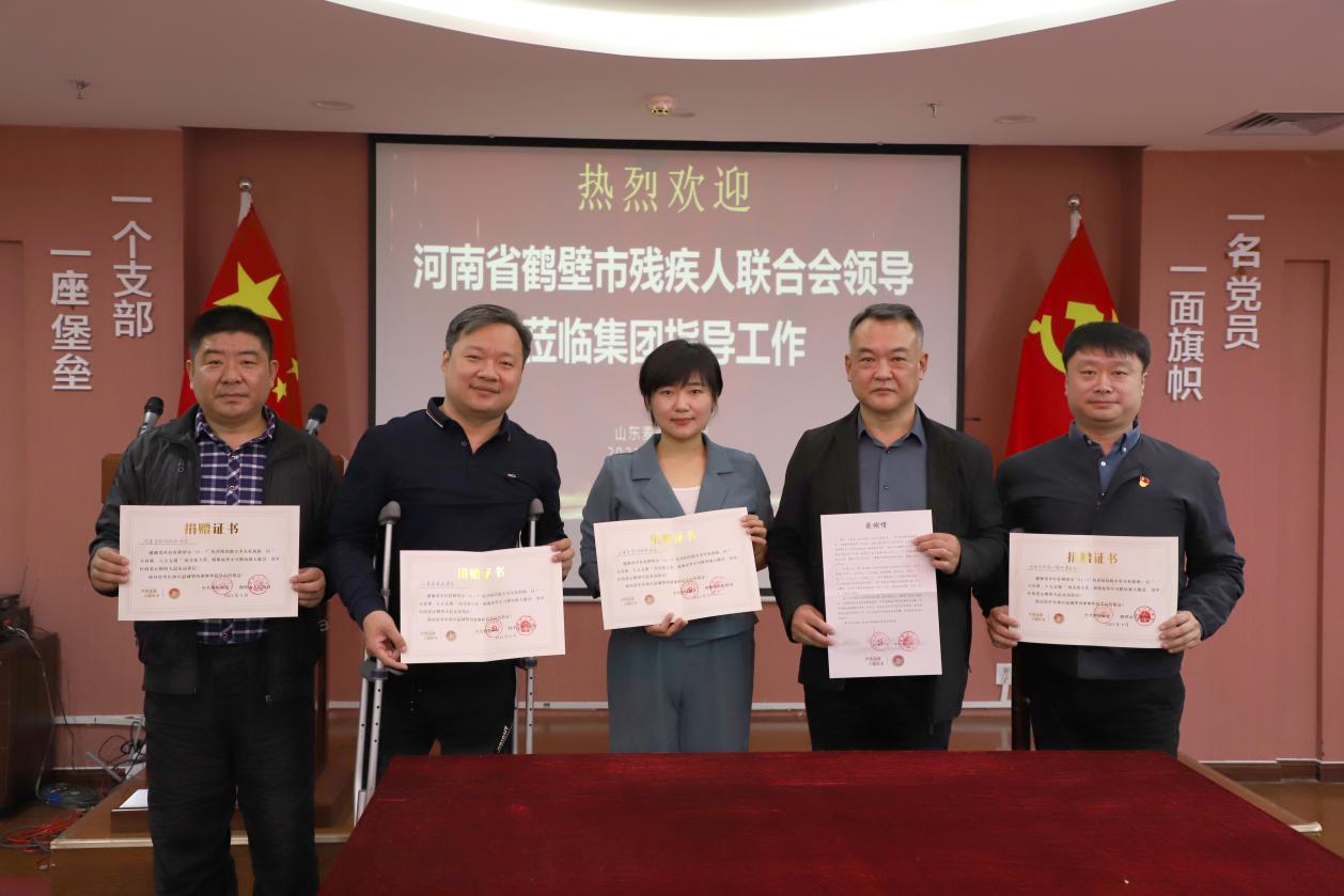 10月10日,鹤壁市残疾人联合会副理事长申国强一行莅临麦德森考察参观,并带来中共鹤壁市委、鹤壁市人民政府《捐赠证书》及鹤壁市人民《感谢信》,感谢集团在鹤壁市“21·7”抗洪抢险救灾中施以援手。山东省残疾人联合会联络部二级主任科员郭珊珊、济南市残疾人福利基金会秘书长徐浩、必威平台党支部书记王勇等陪同。
