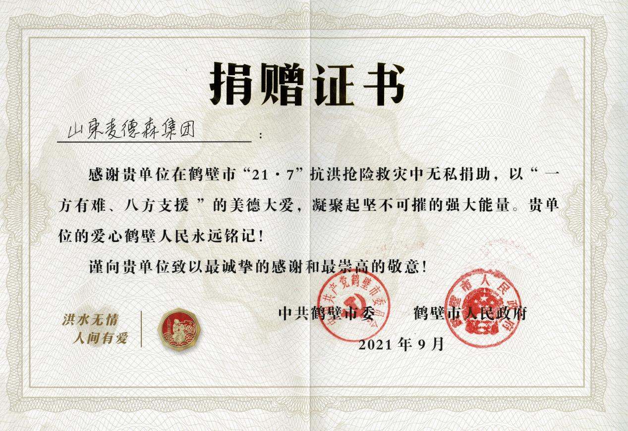 申国强衷心感谢麦德森等三家单位在鹤壁市灾情最严峻的时期伸出援手、奉献爱心。他表示,鲁豫同心,山东的兄弟姐妹热诚关心鹤壁受灾群众、倾情关注鹤壁救灾工作,给鹤壁市以极大鼓舞和强大动力,鹤壁大地将永远铭记。