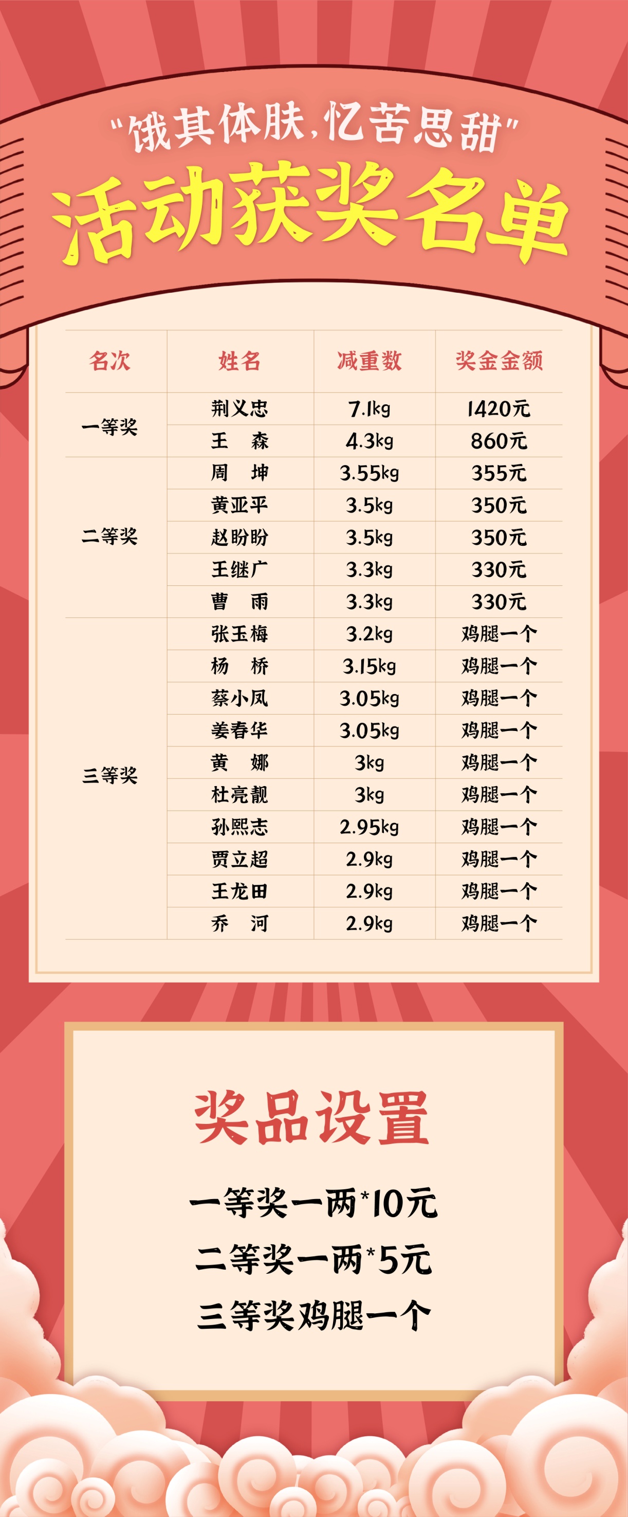 来自大医学事业部的荆义忠成为活动的“减重达人”,三天时间共减重7.1kg,获得奖金1420元。
