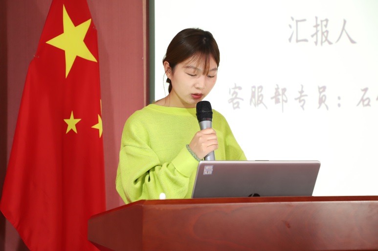 大会在麦德森主题曲《心向阳光》歌声中开幕。会议伊始,搜搜中医产品部经理王丹妹、客服部专员石领玉、公司副总经理鲍慧清依次进行季度工作汇报,围绕工作职责、任务,进行认真、全面的总结,同时对年底收官工作进行部署和安排。