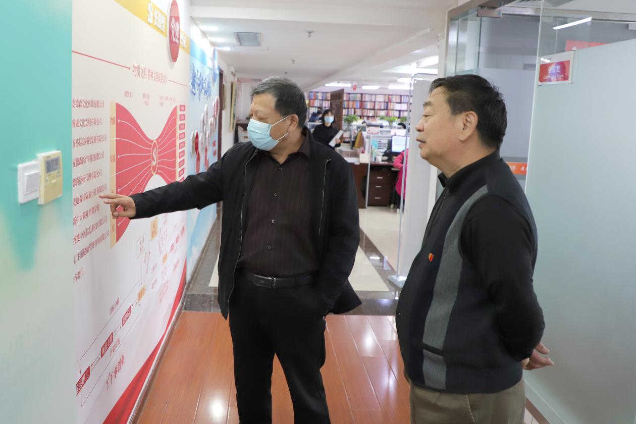 在桑守正的引导下,李同山对集团党建书屋、党建宣传墙、残疾人文化艺术长廊以及各业务职能部门办公区域进行了参观。