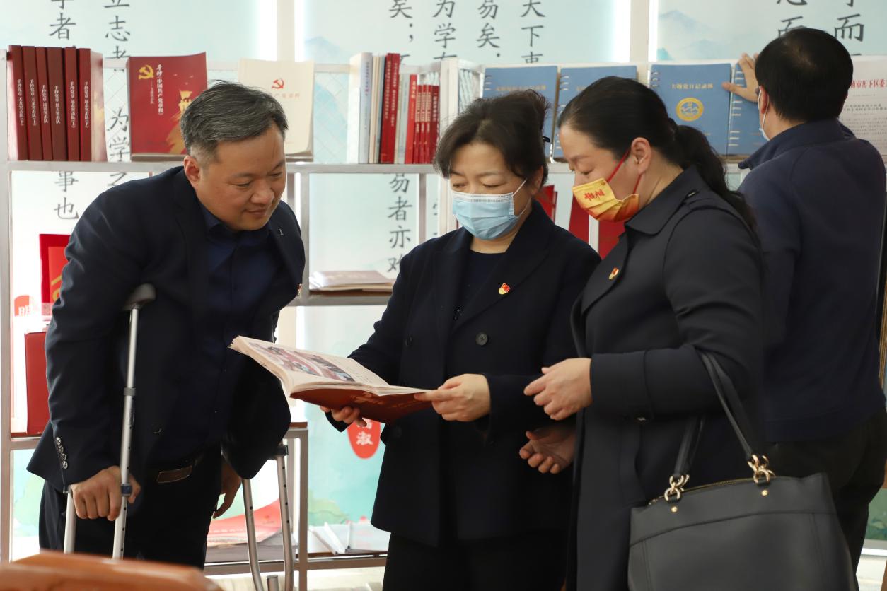 在党群活动室,姜欣一行观看了反映麦德森党史学习活动的纪录片《学党史 固初心——必威平台党支部2021年党史学习教育活动纪实》。
