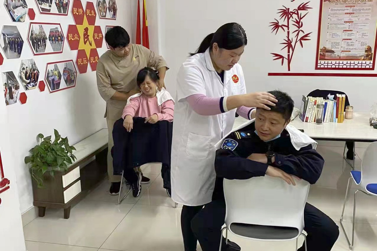 随后,盲人调理师为每位司机师傅提供了15-30分钟的推拿服务。